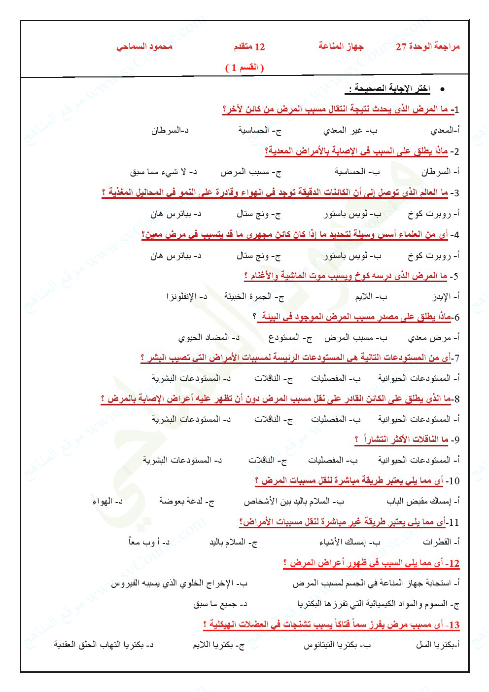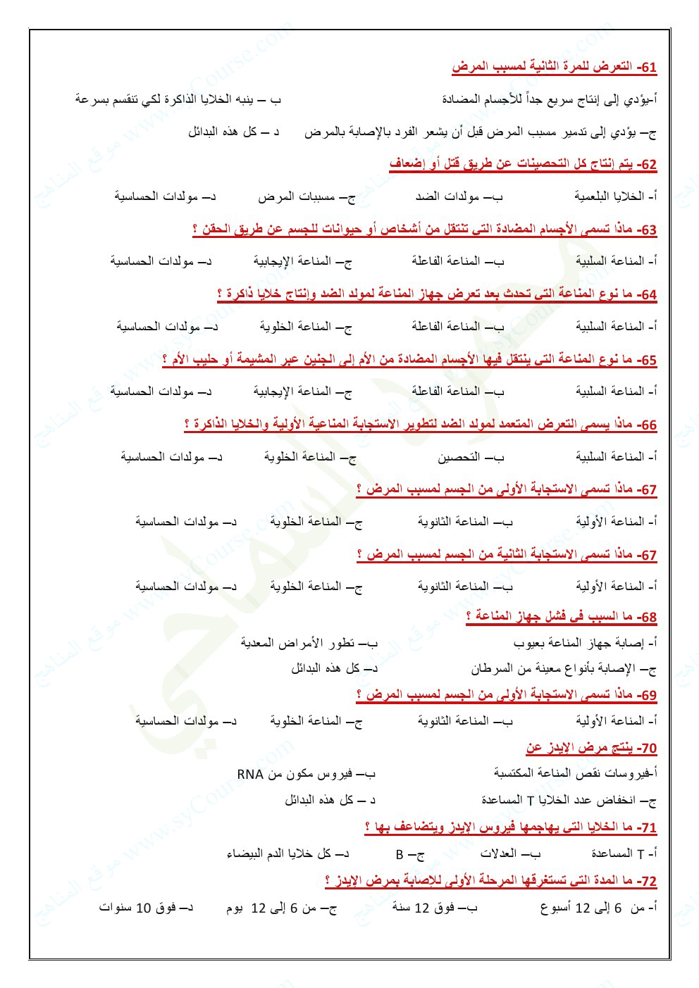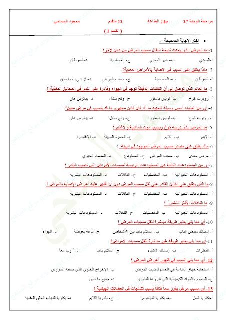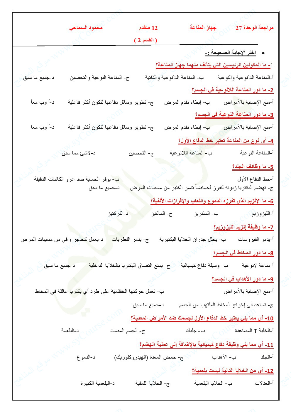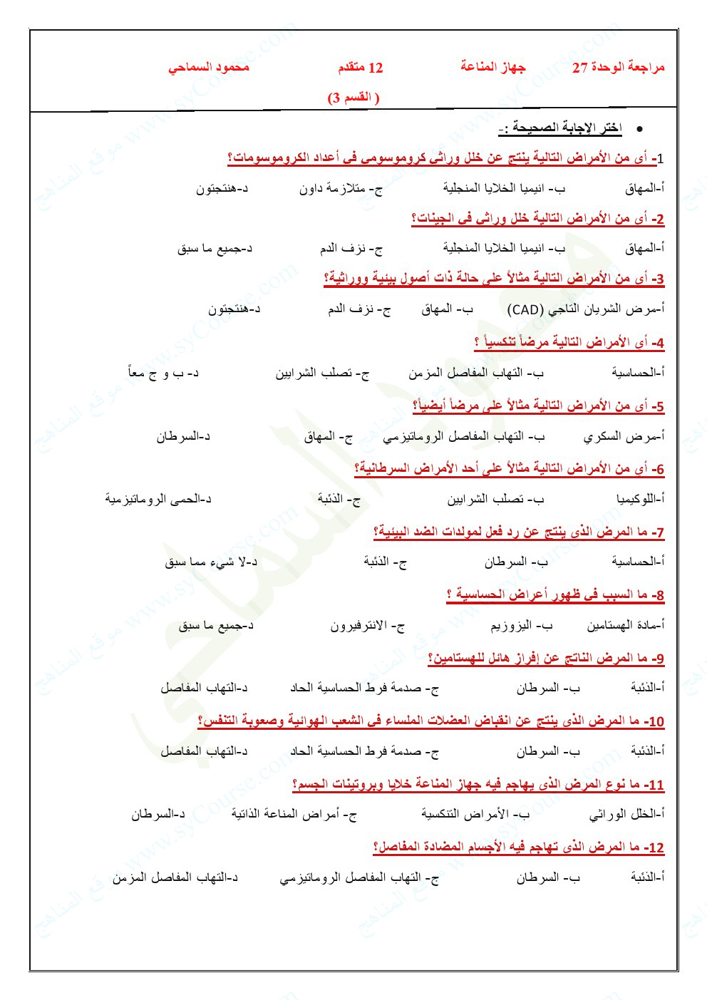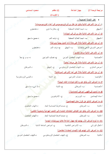 معلومات الملف: الصف الثاني عشر المتقدم, الفصل الثالث, أحياء, جميع أسئلة وحدة (جهاز المناعة) مع أسئلة هامة جداً. | ||