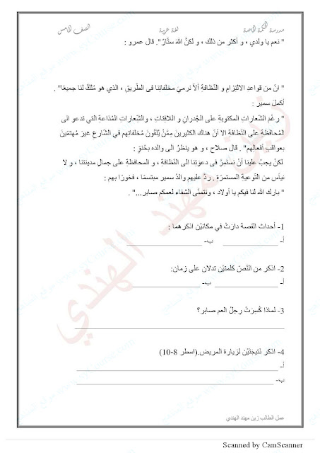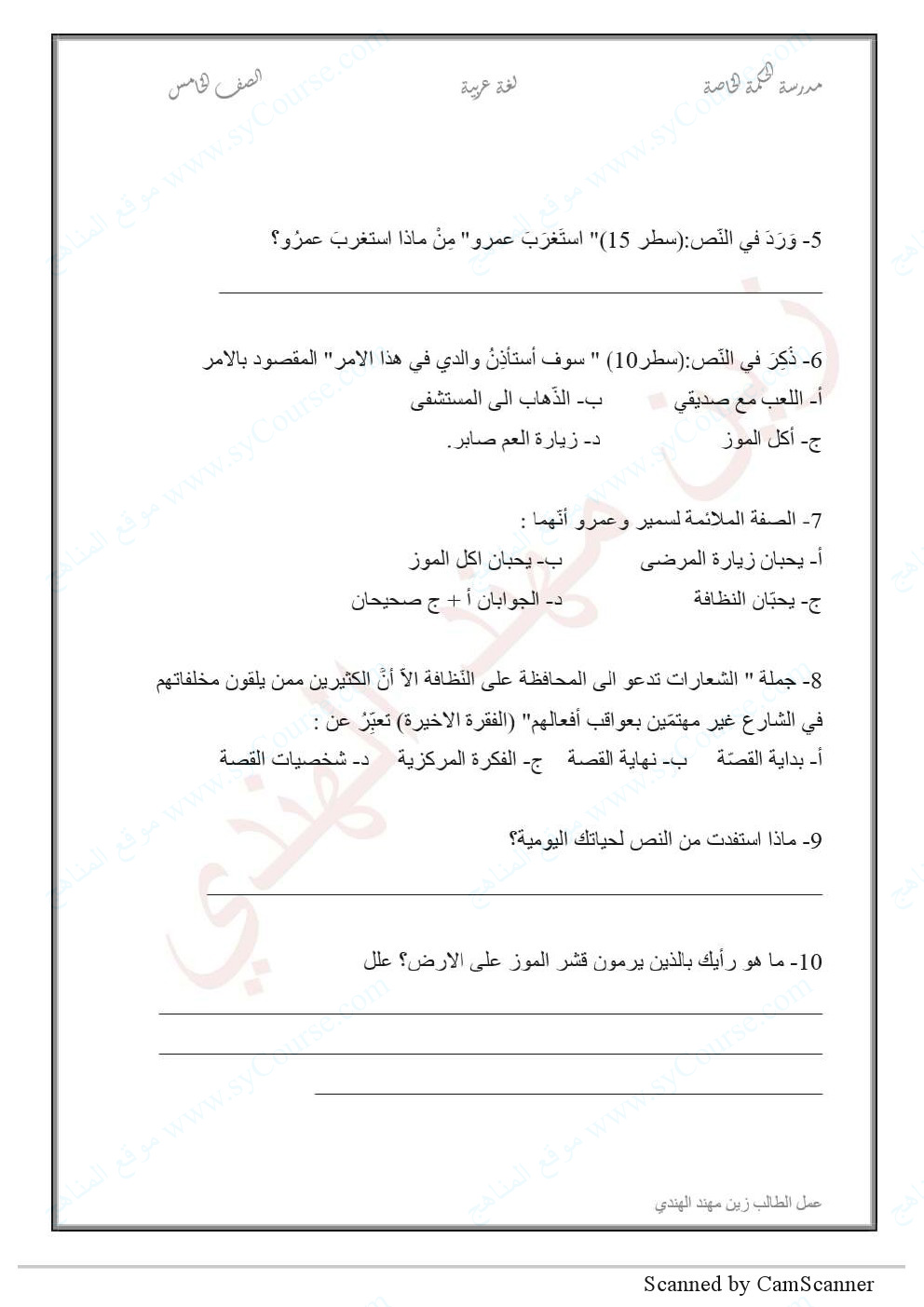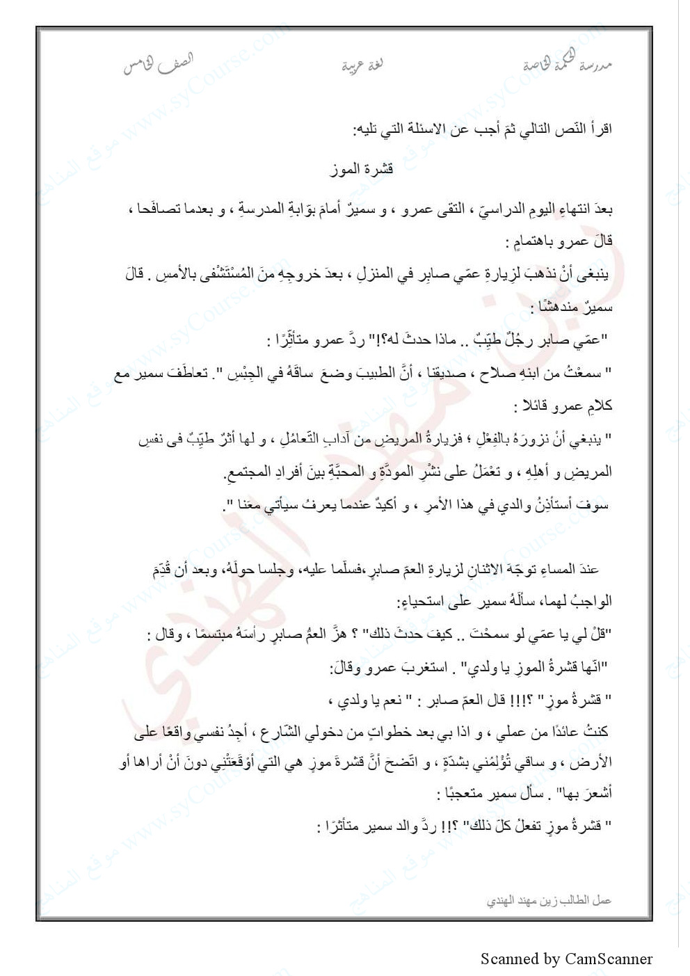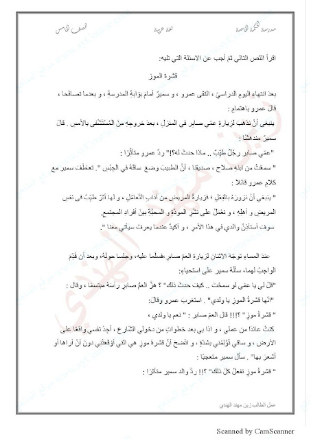 الصف الخامس, الفصل الثالث, لغة عربية, أوراق عمل درس قشرة الموز للتحميل اتبع الرابط التالي: http://riffhold.com/26Dv