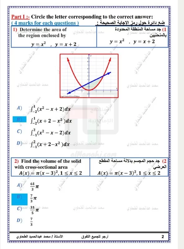 حل نماذج أسئلة الامتحان التجريبي وفق الهيكل الوزاري مع أهم التوقعات - إعداد: محمد عبد الحميد الطحاوي