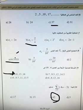 الصف الحادي عشر المتقدم، رياضيات، اختبار منتصف الفصل الدراسي الثالث 2016-2017
