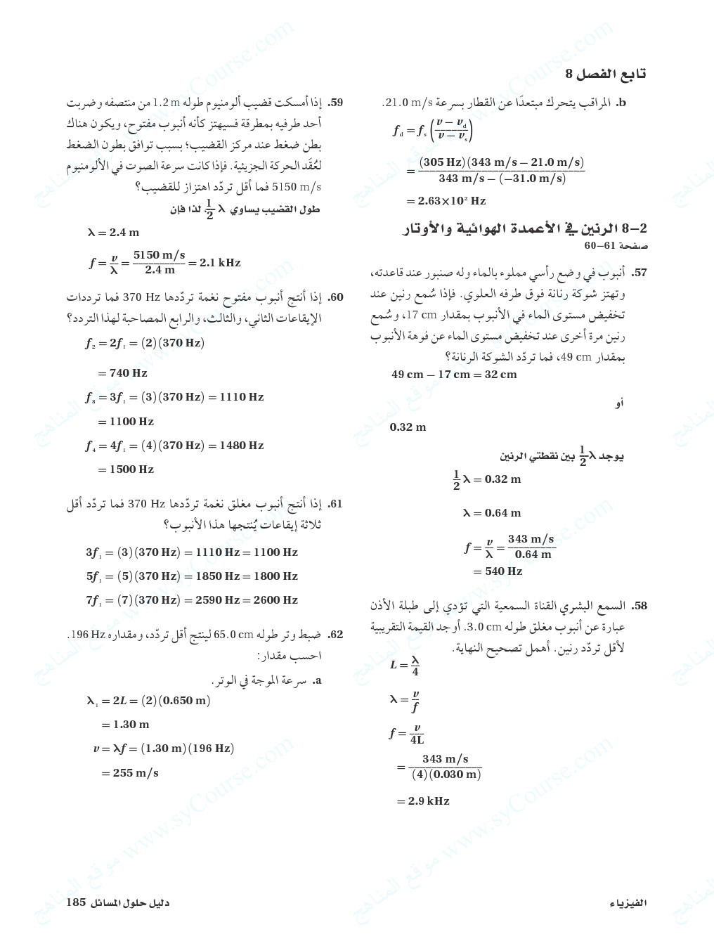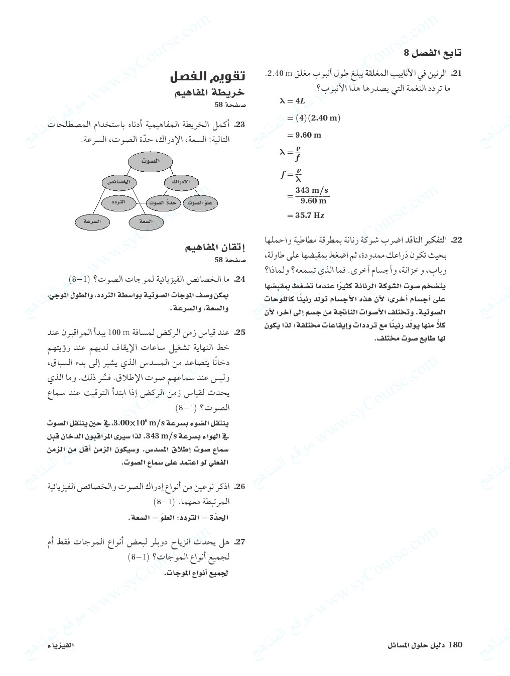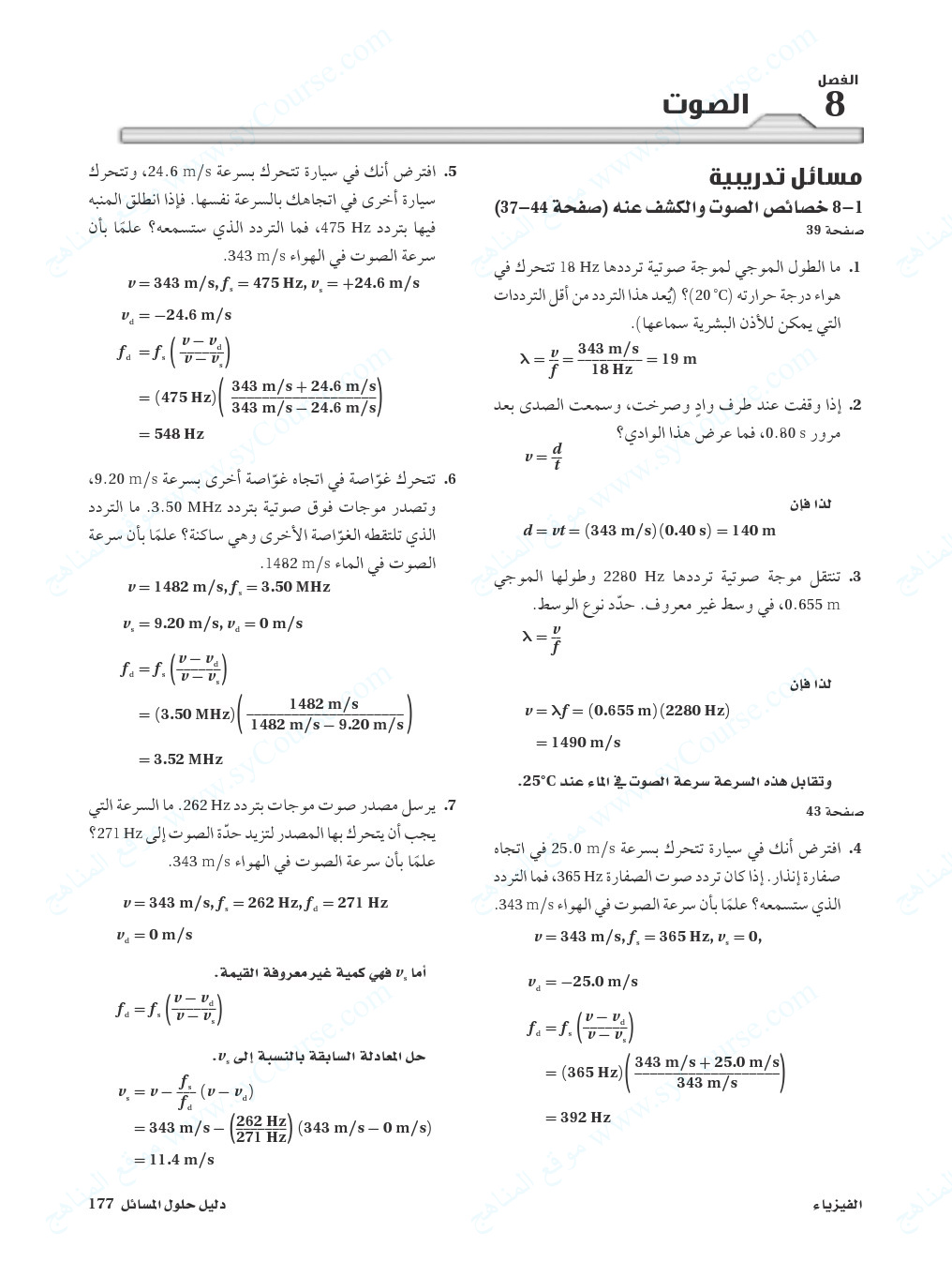 الصف الحادي عشر المتقدم, الفصل الثالث, فيزياء, حل وحدة الصوت بالتفصيل
