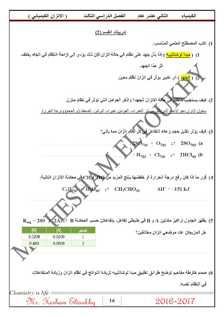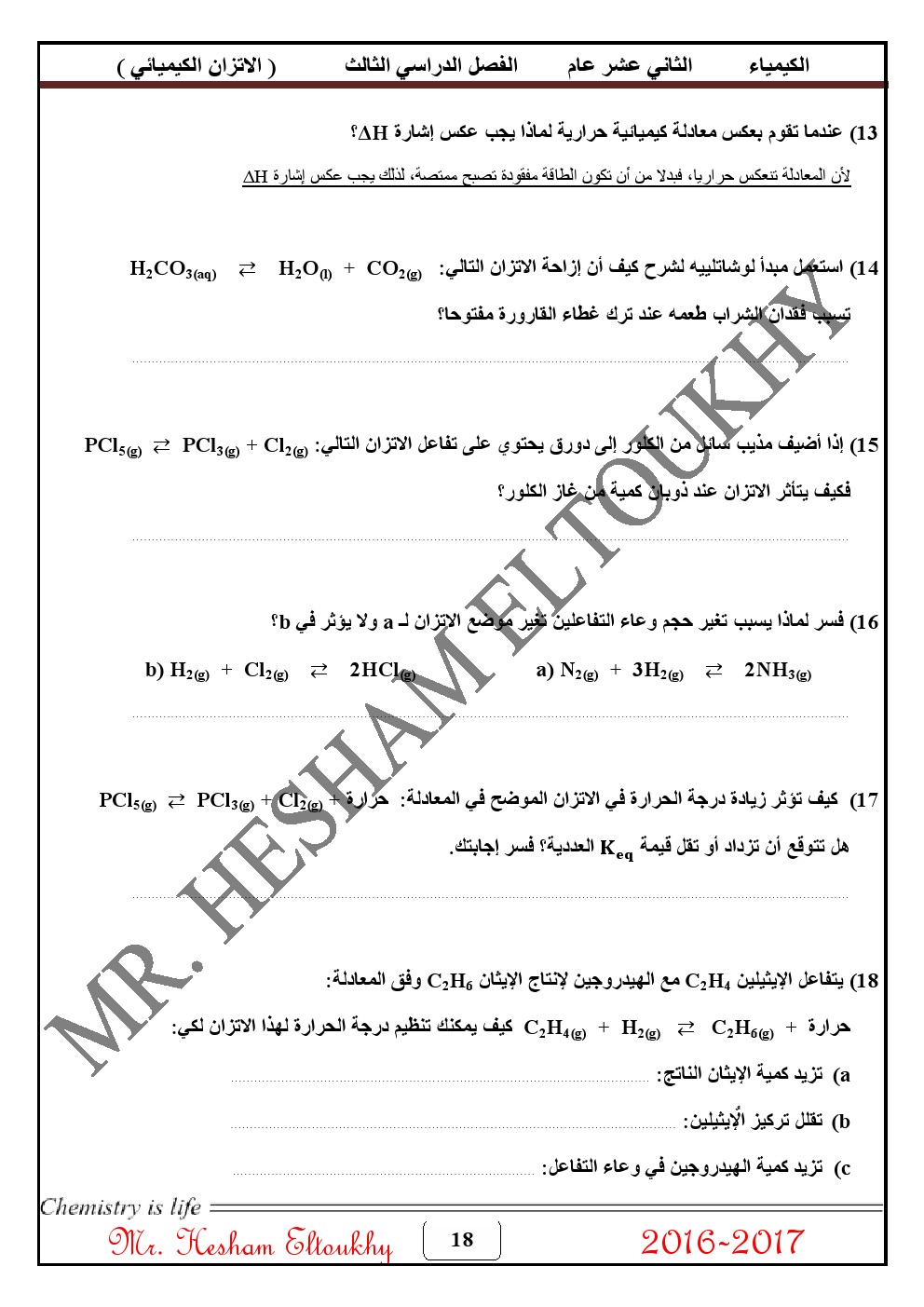 الصف الثاني عشر العام, الفصل الثالث, كيمياء, تلخيص الاتزان الكيميائي للتحميل اتبع الرابط التالي: http://aefiles.website/do.php?id=550">http://aefiles.website/do.php?id=550