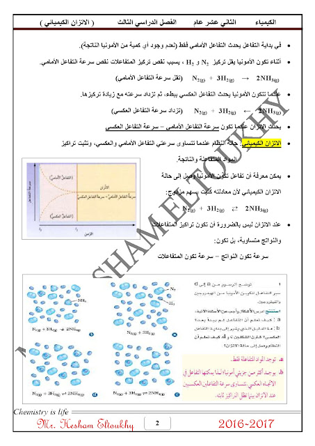 معلومات الملف: الصف الثاني عشر العام, الفصل الثالث, كيمياء, تلخيص الاتزان الكيميائي. | |||