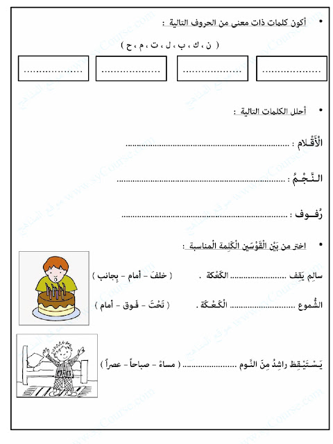 الصف الثاني, لغة عربية, نموذج لامتحان نهاية العام | ||