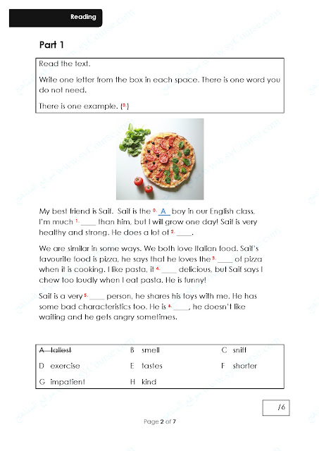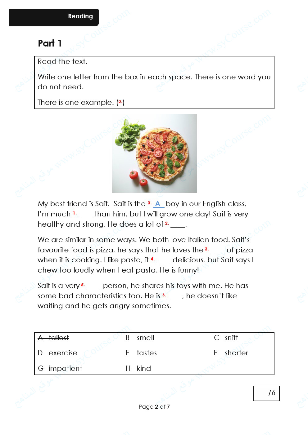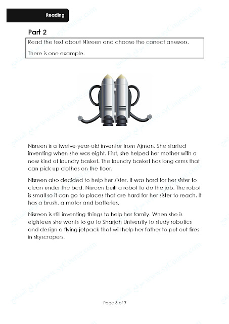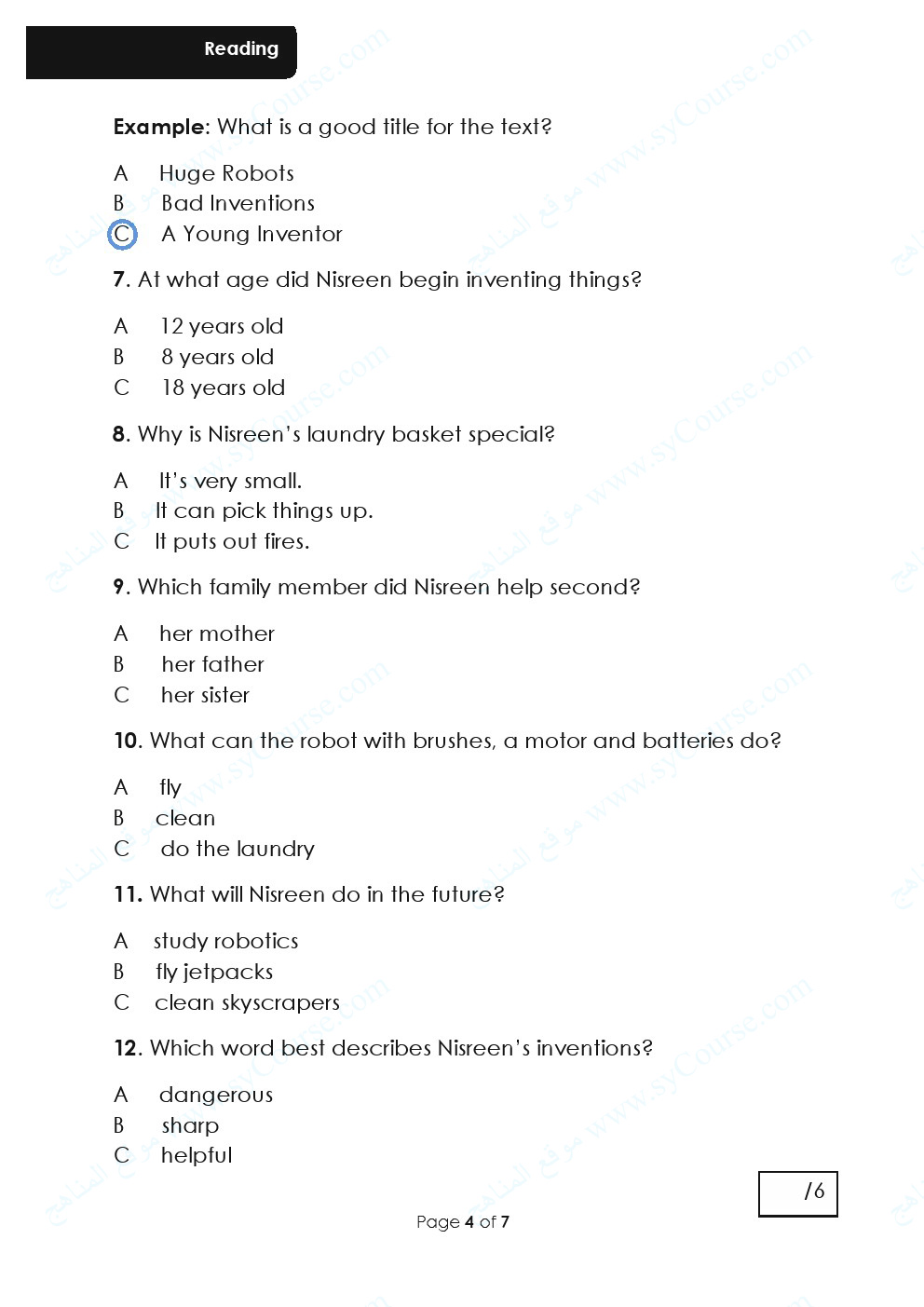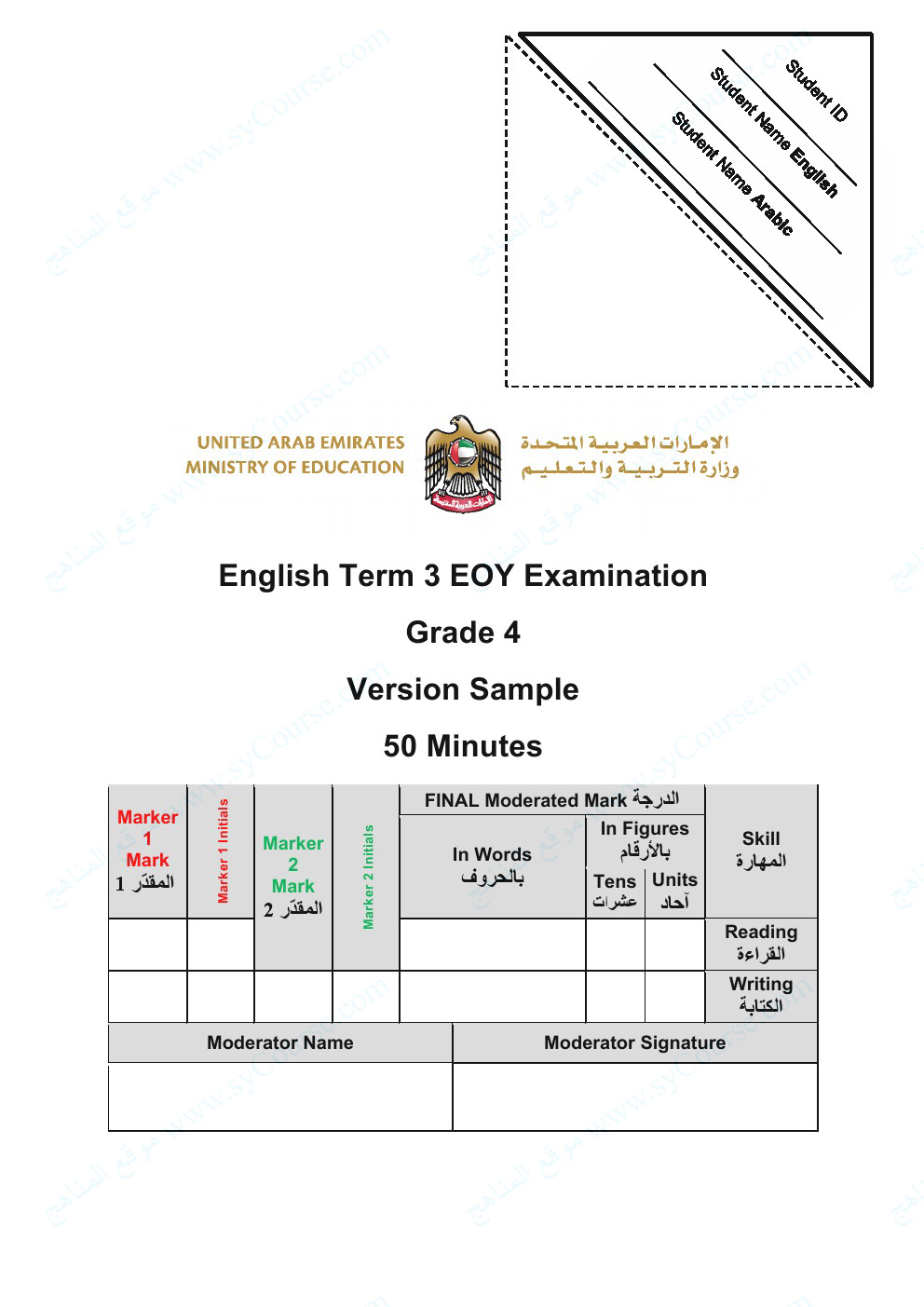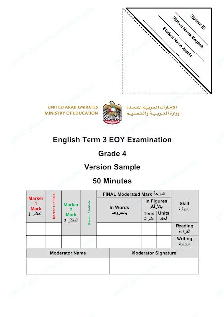 الصف الرابع, لغة انكليزية, نموذج لامتحان نهاية العام