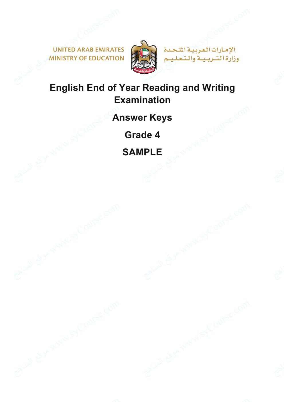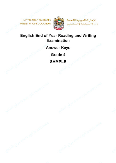 معلومات الملف: الصف الرابع, لغة انكليزية, النموذج الرسمي لامتحان نهاية العام مع الاجابات | ||
