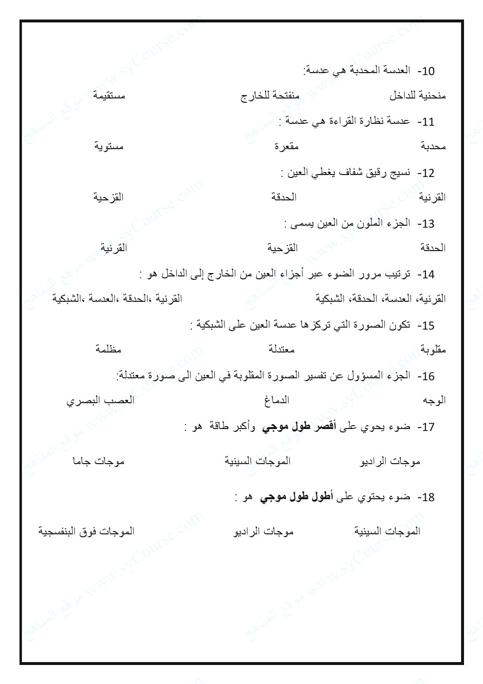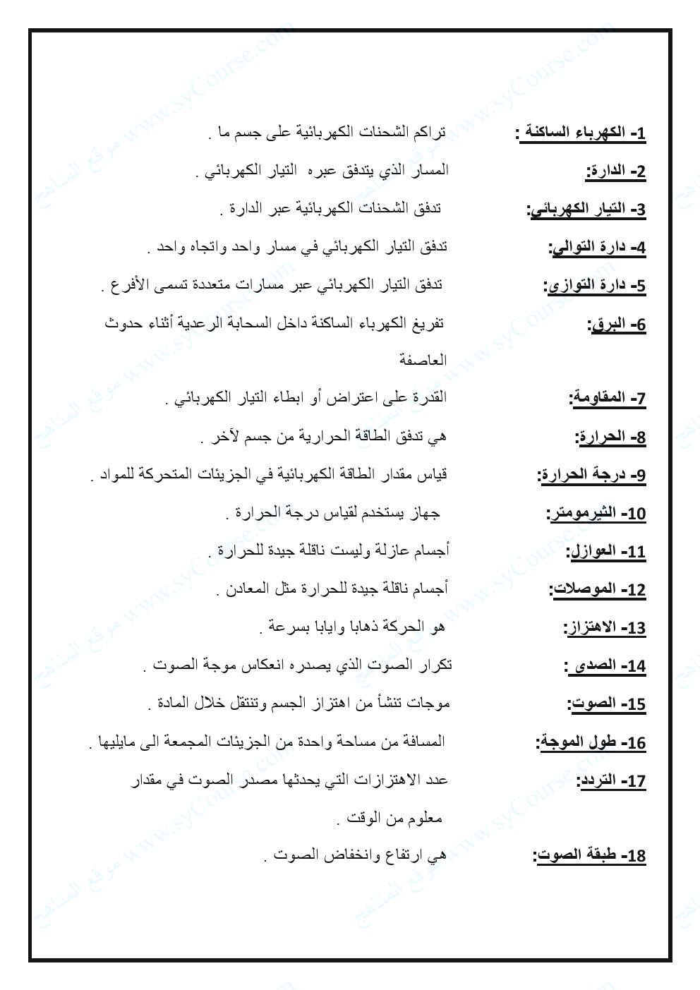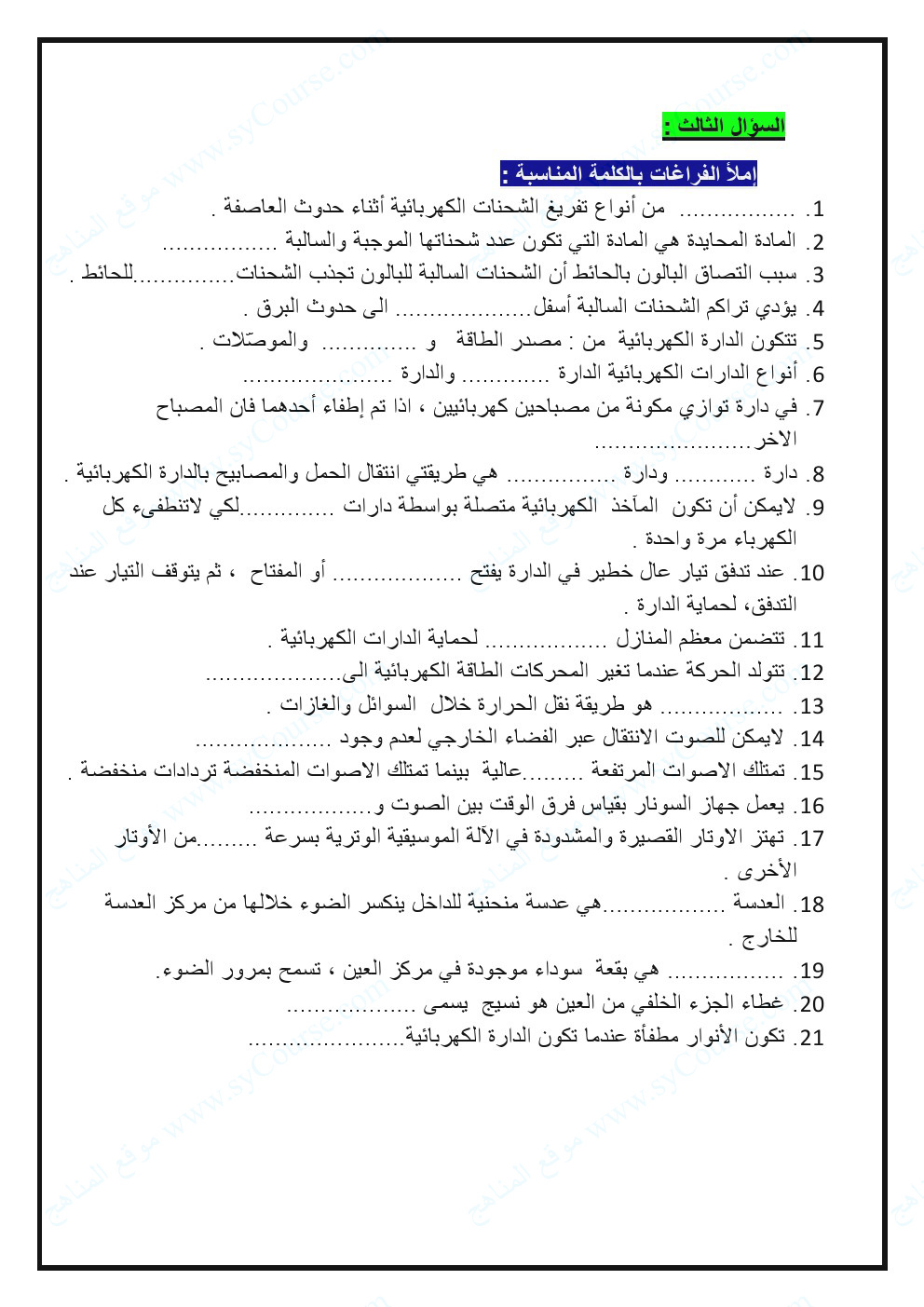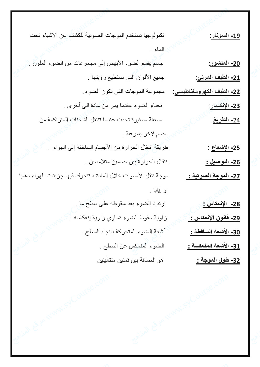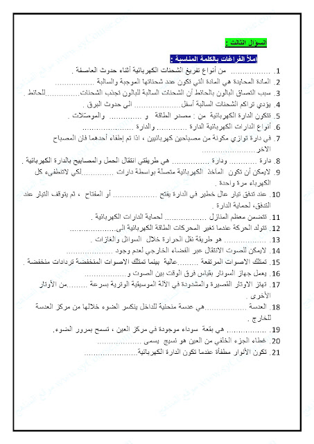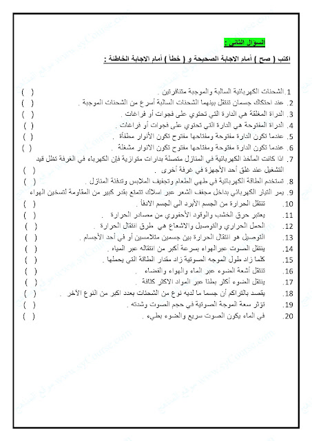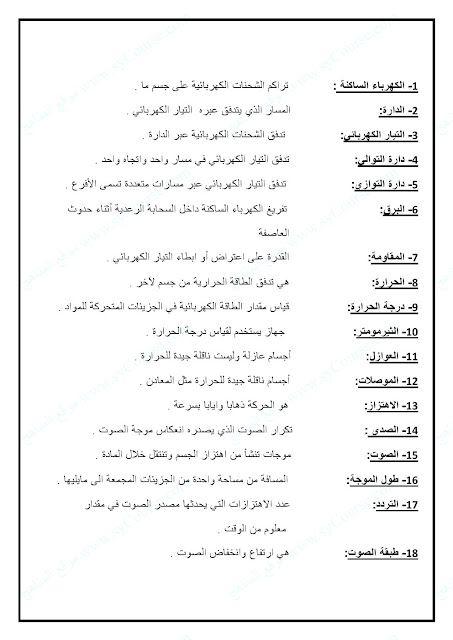 | تدريبات وملخص الوحدة التاسعة المادة والصوت والضوء | ||