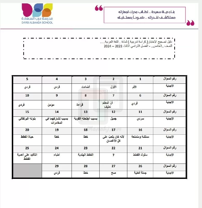 حل النموذج التدريبي للامتحان النهائي - إعداد: مدرسة درب السعادة | ||