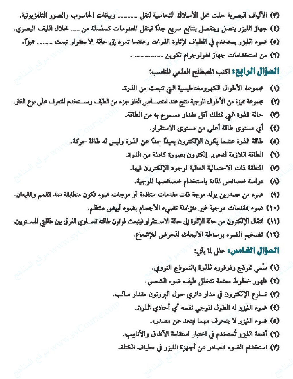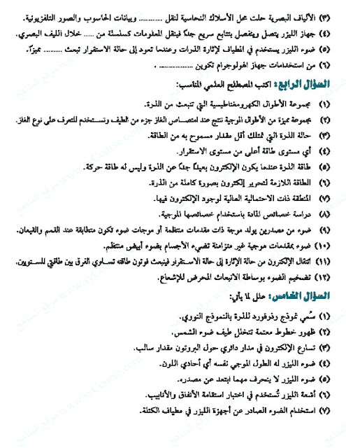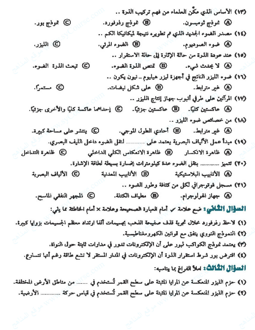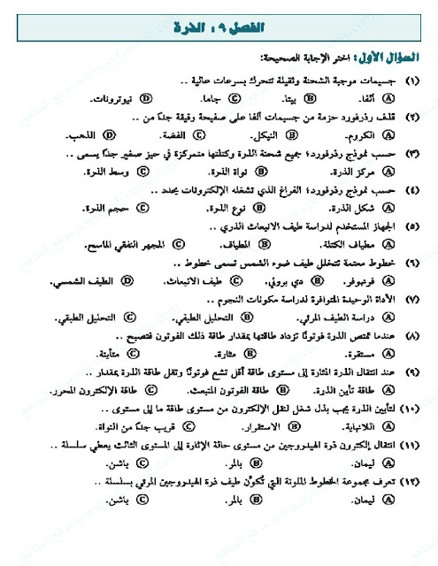 الصف الثاني عشر المتقدم, الفصل الثالث, فيزياء, مراجعة الكم والذرة |
