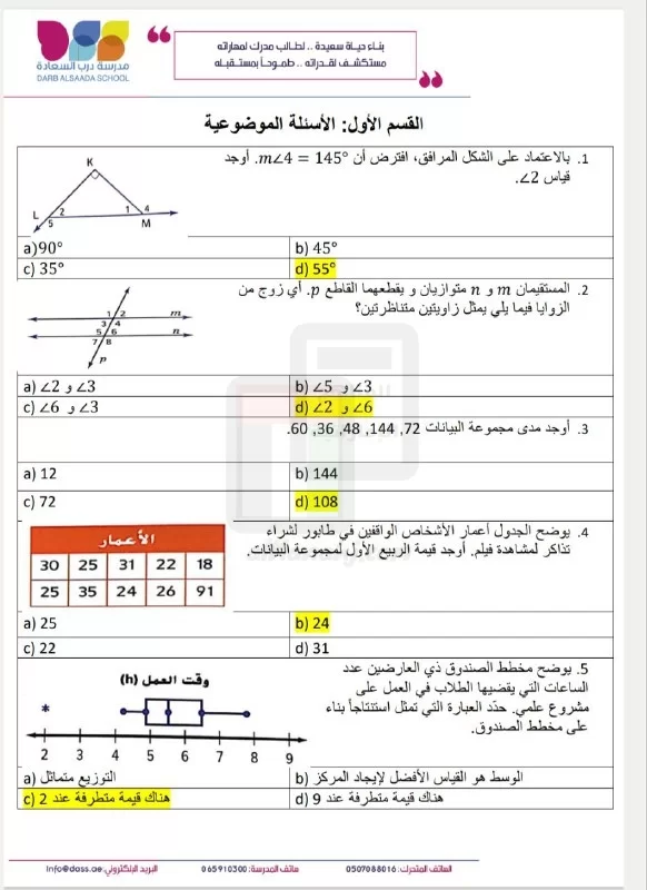 حل النموذج التدريبي للامتحان النهائي - إعداد: مدرسة درب السعادة | ||