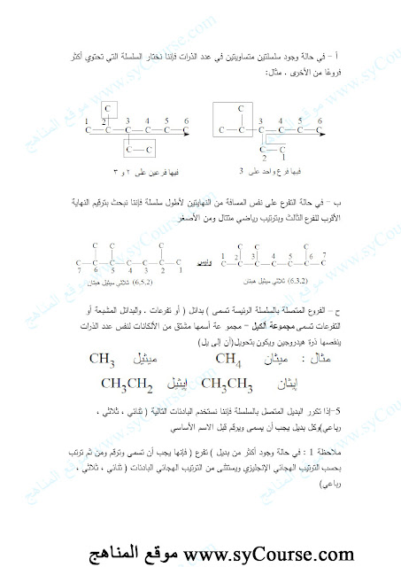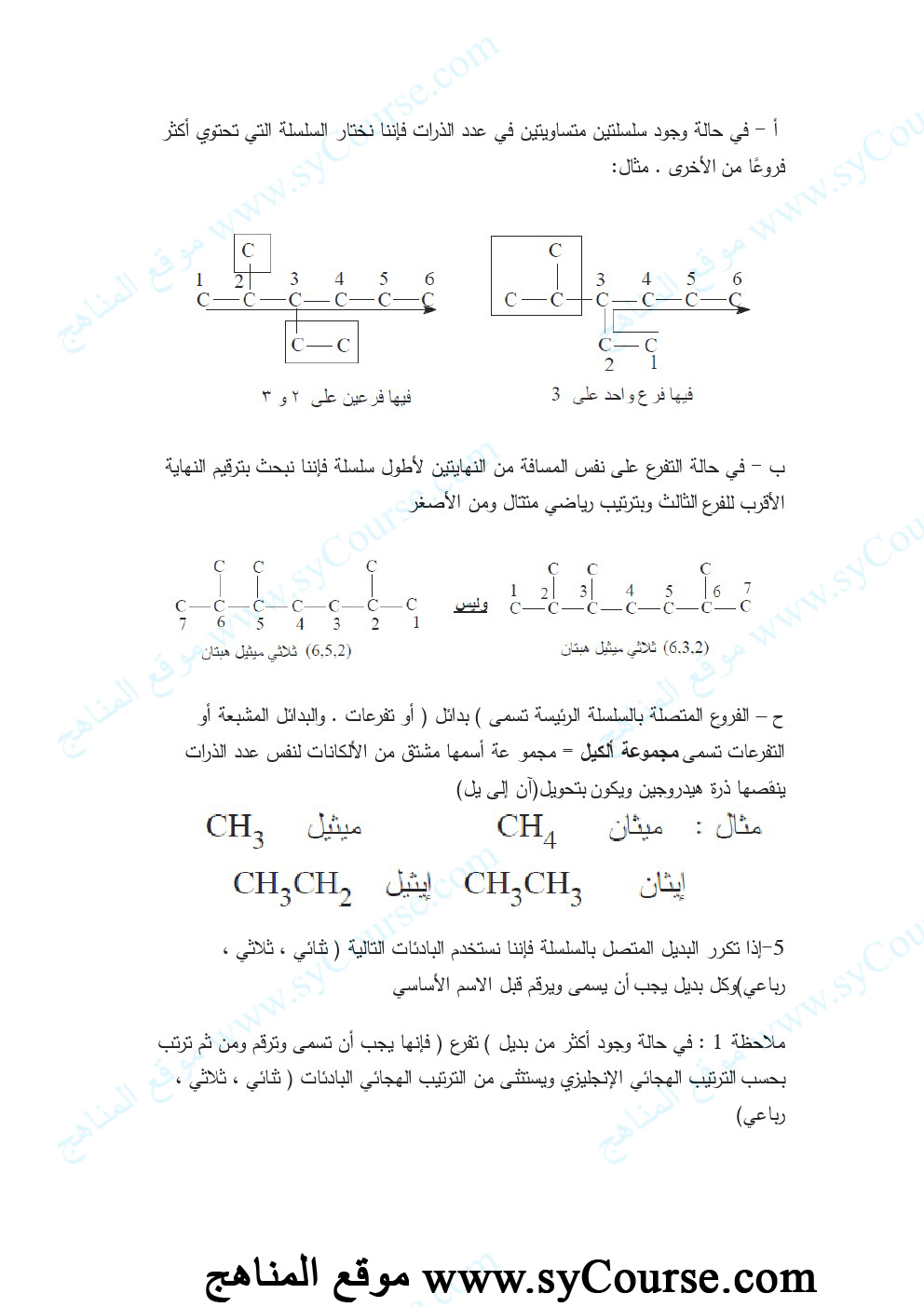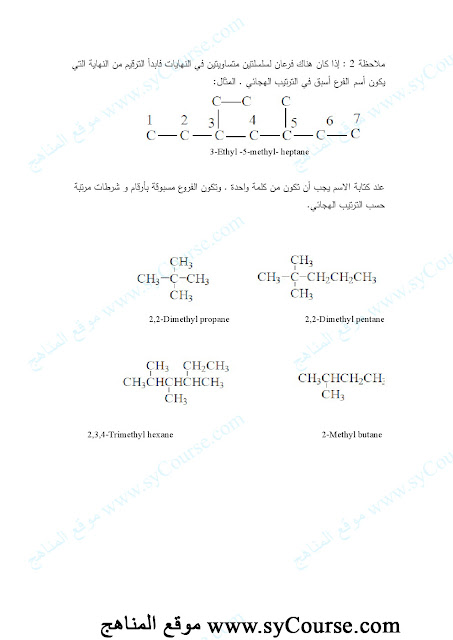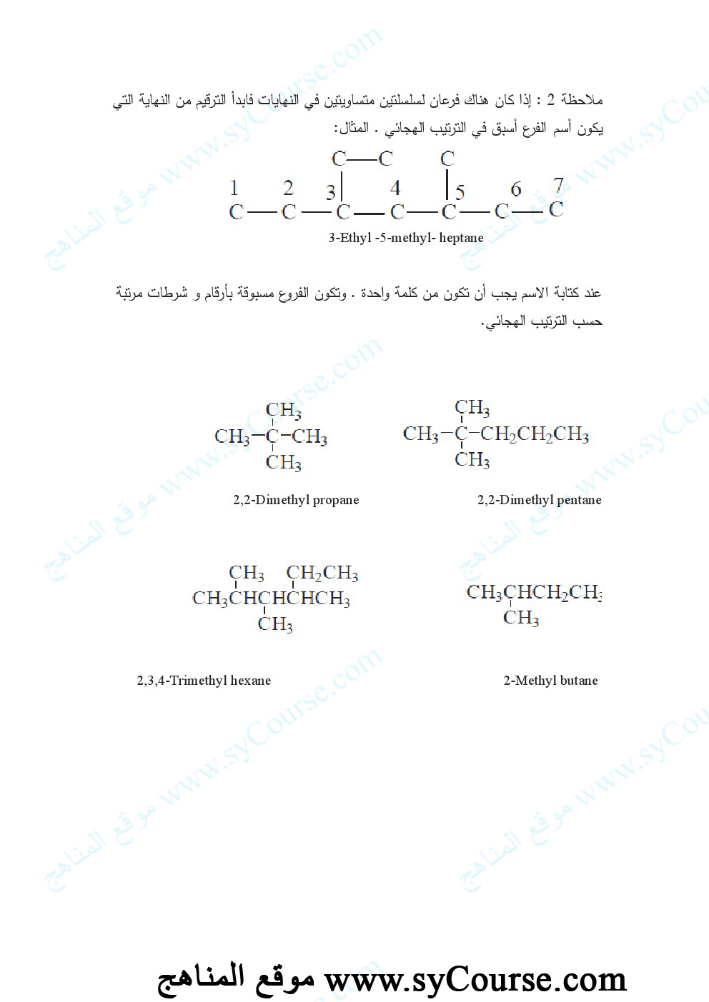 الصف الثاني عشر, الفصل الثالث, كيمياء, ملخص الالكانات