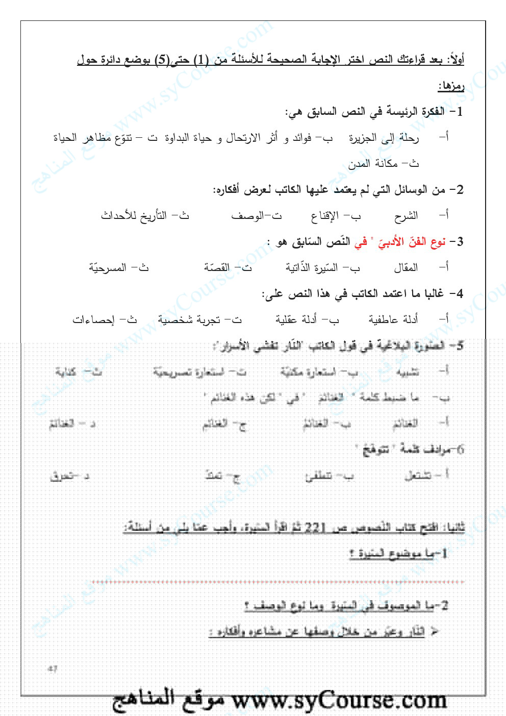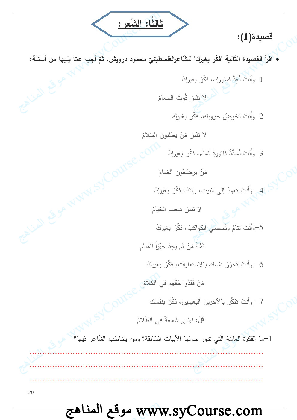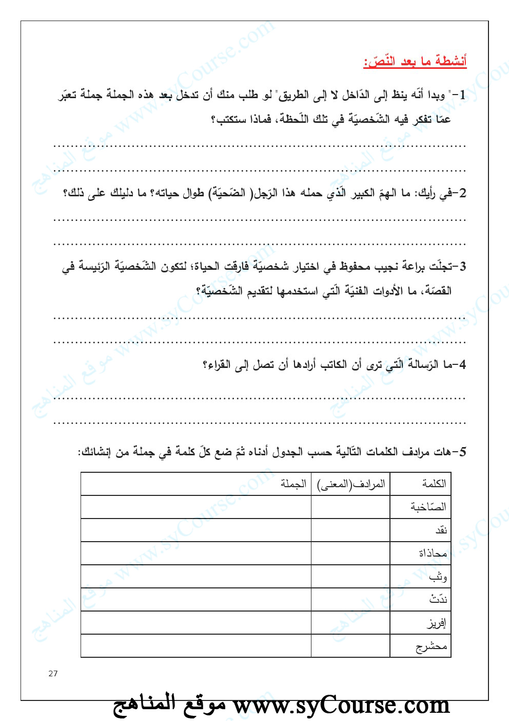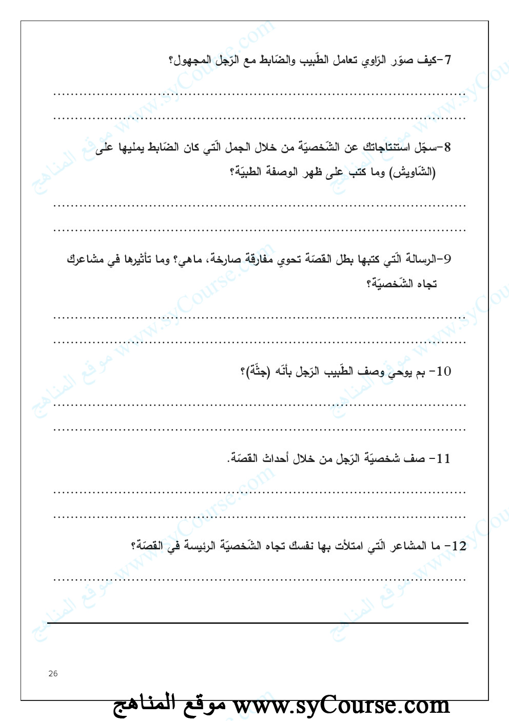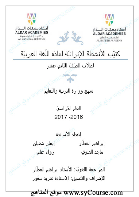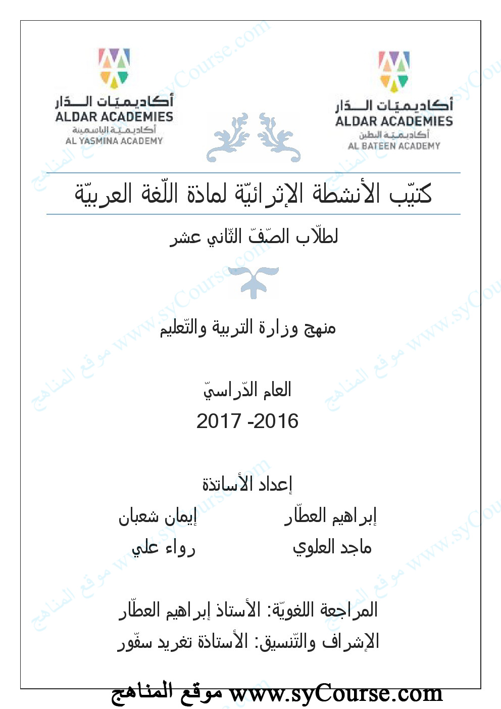 الصف الثاني عشر, لغة عربية, الكتيب الاثرائي