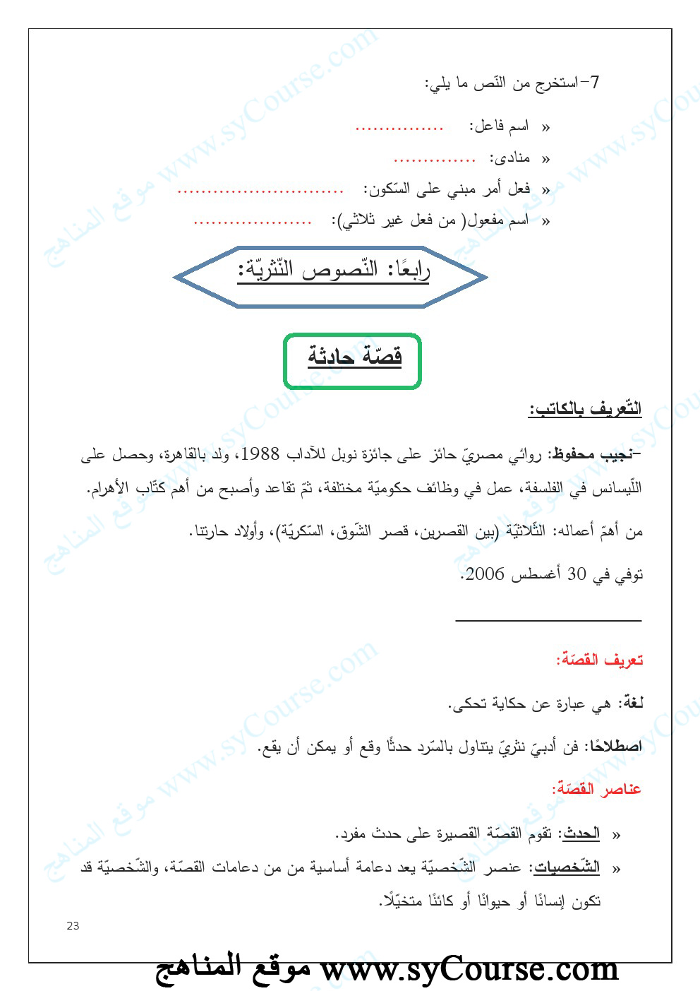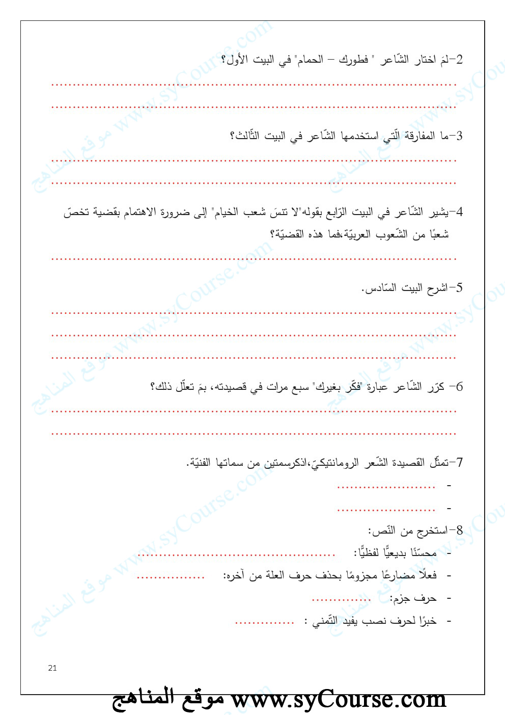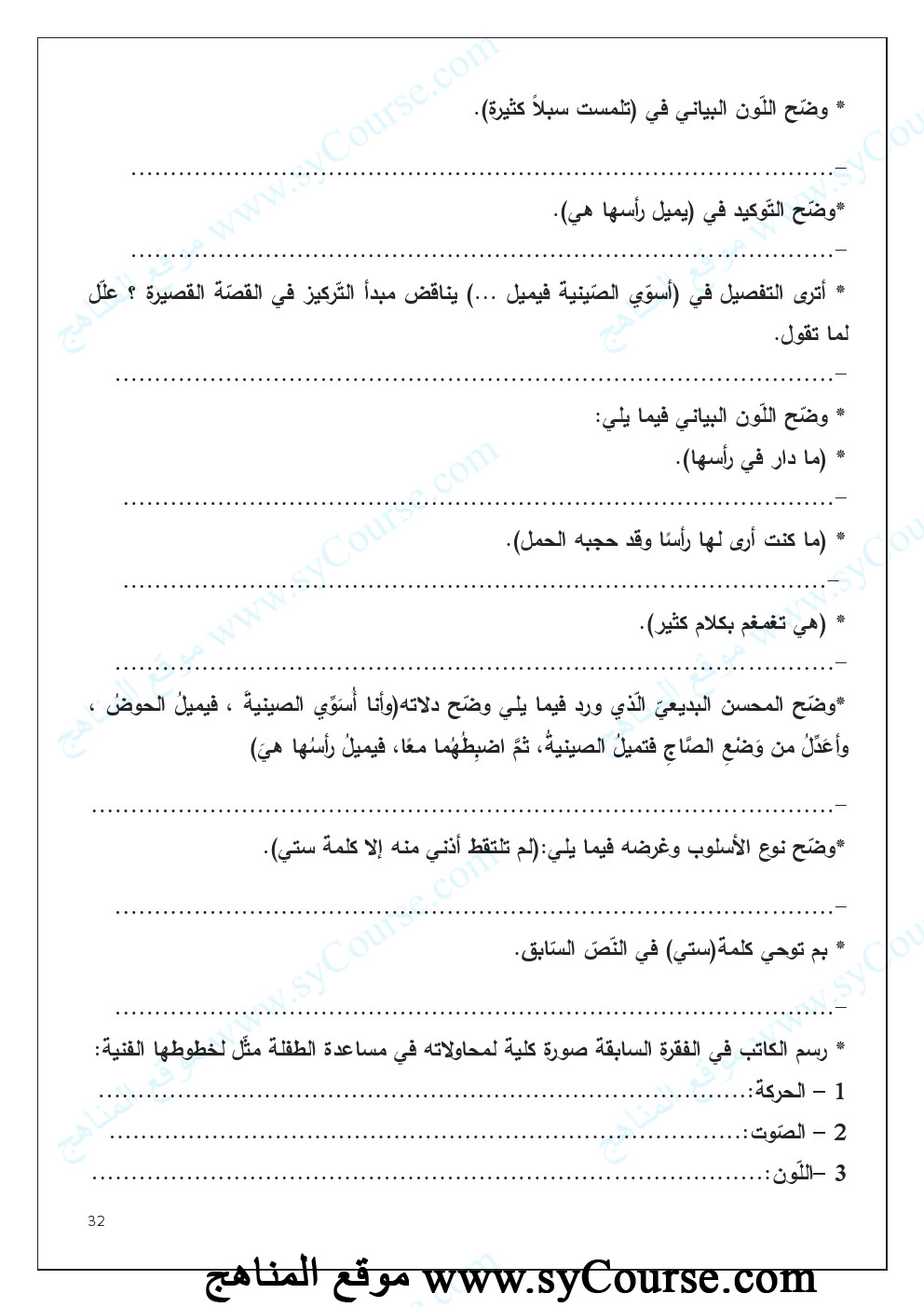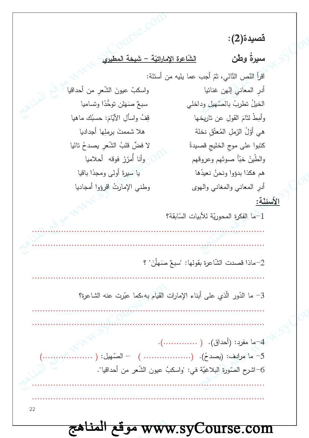 الصف الثاني عشر, لغة عربية, الكتيب الاثرائي