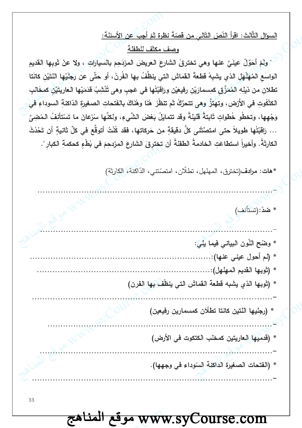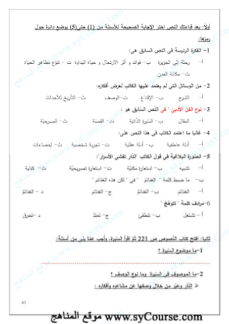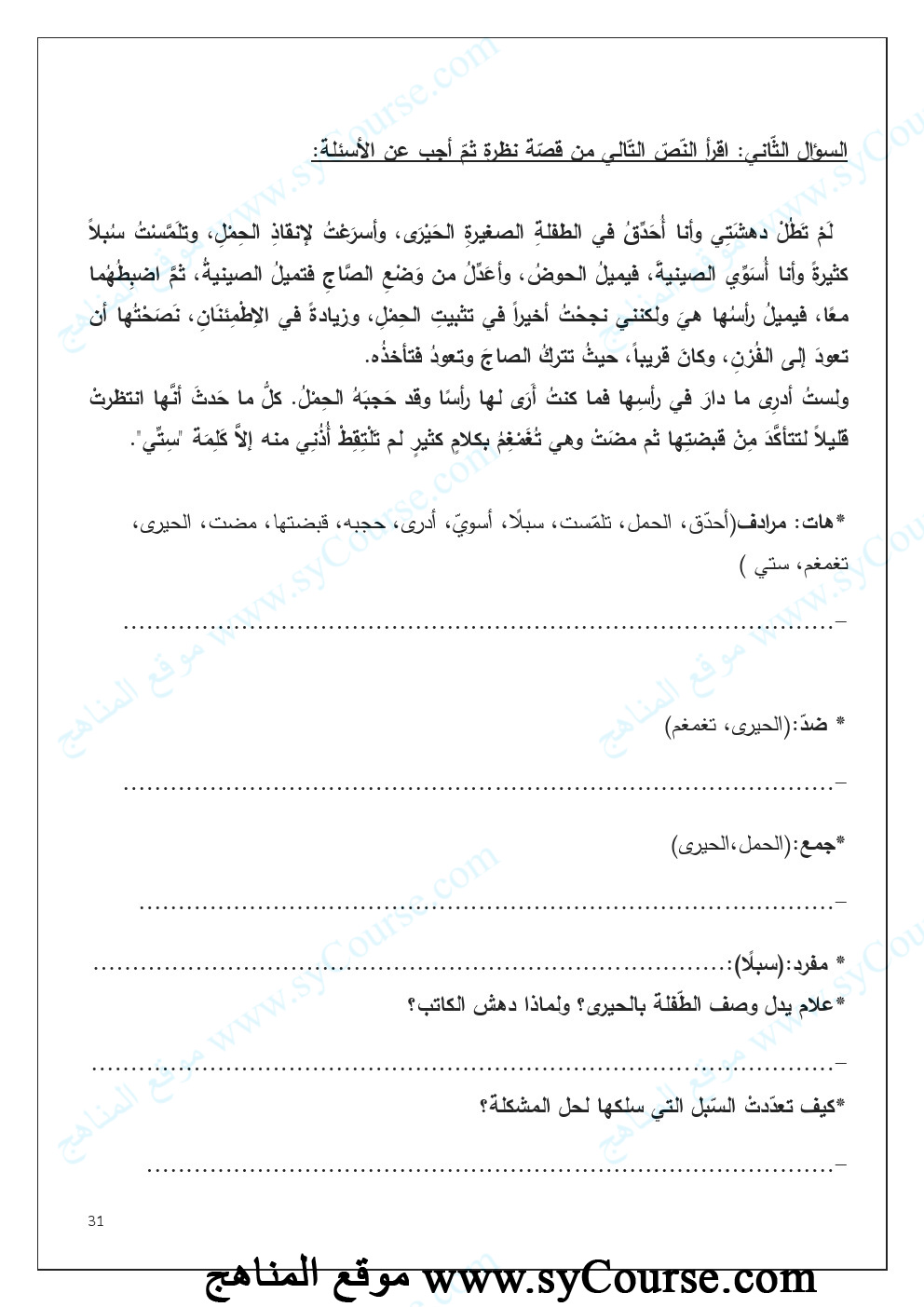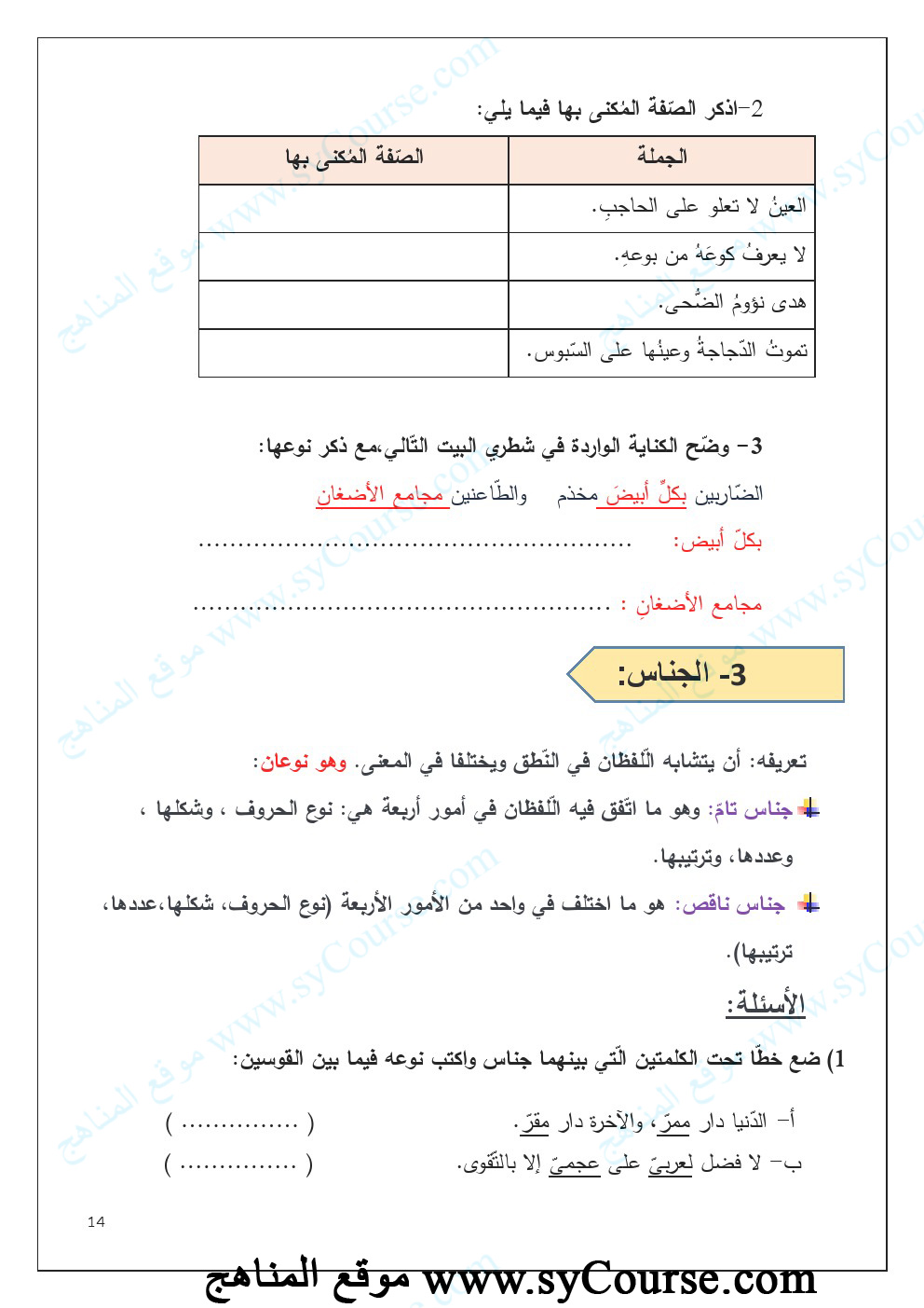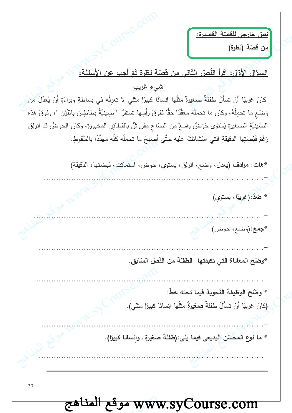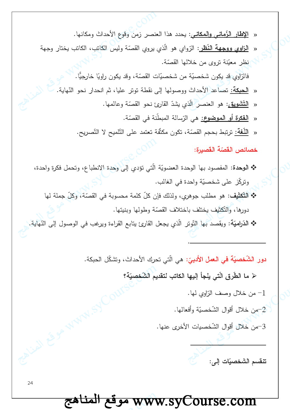 الصف الثاني عشر, لغة عربية, الكتيب الاثرائي