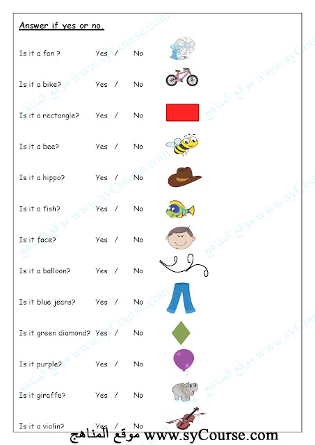 معلومات الملف: الصف الأول, الفصل الثالث, لغة انكليزية, أوراق عمل شاملة أحرف مفقودة, الحواس الخمسة, توصيل, أجب بنعم أو لا. | ||