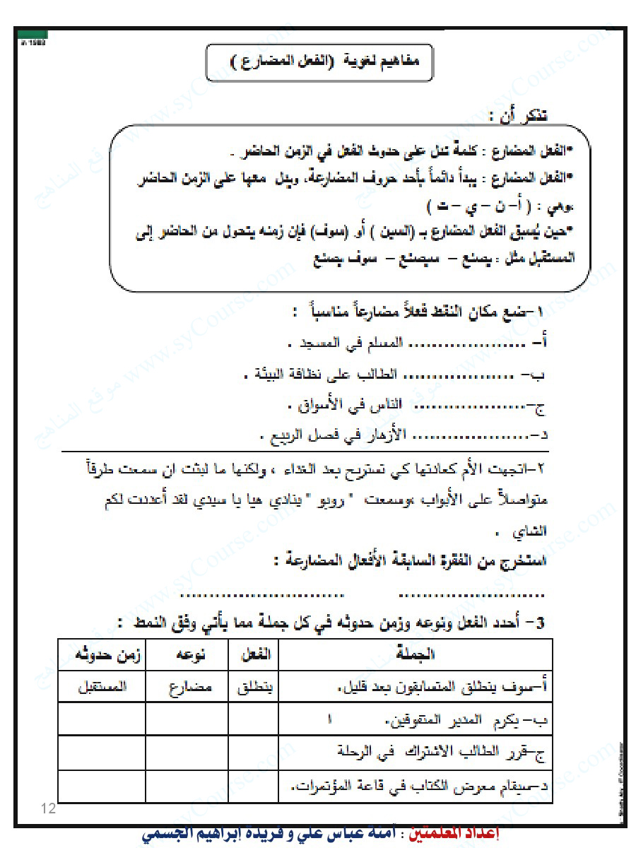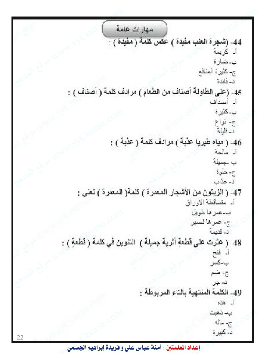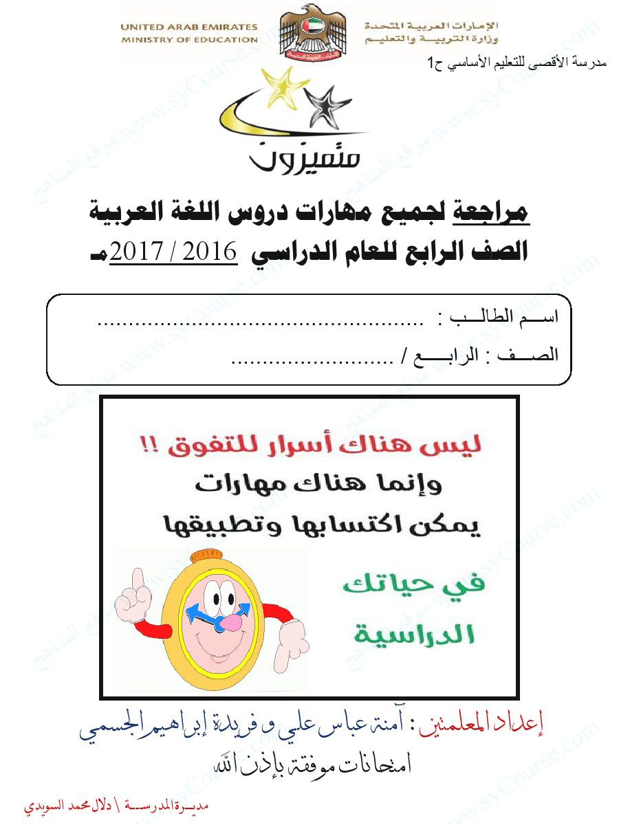 الصف الرابع, جميع الفصول, لغة عربية, مراجعة لجميع مهارات اللغة العربية لتحميل الملف اتبع الرابط التالي: http://sycourse.com/up/do.php?id=407
