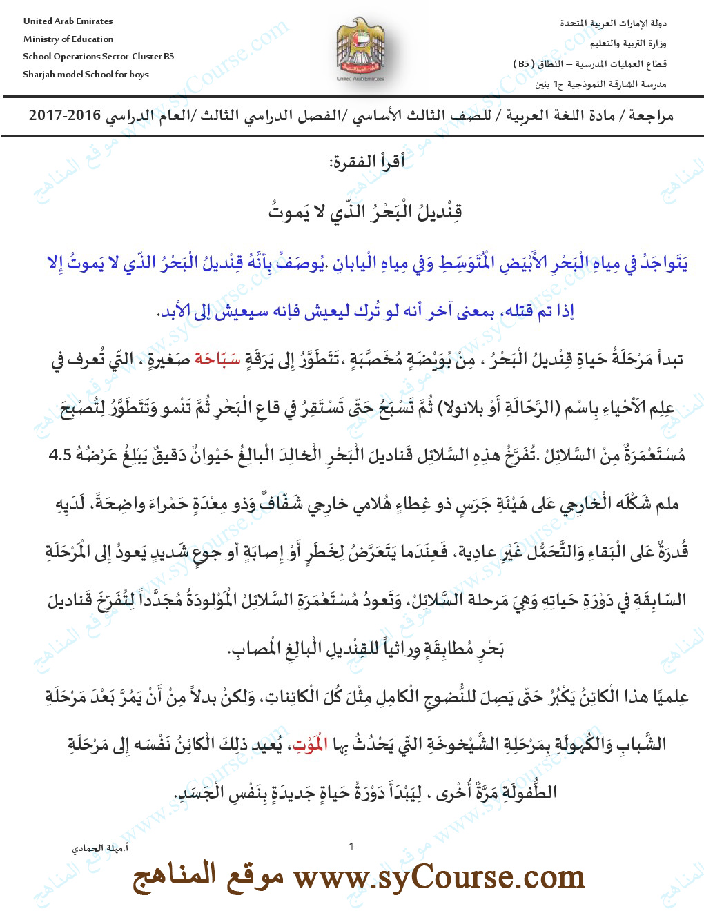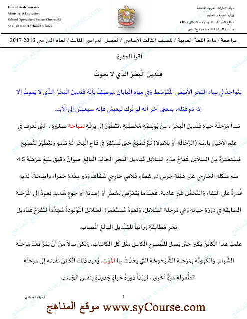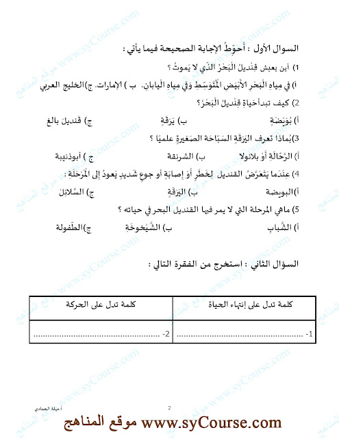 الصف الثالث, الفصل الثالث, لغة عربية, نموذج امتحاني لنهاية العام لتحميل الملف اتبع الرابط التالي: http://sycourse.com/up/do.php?id=412