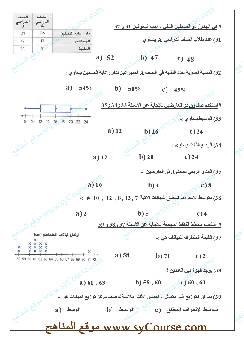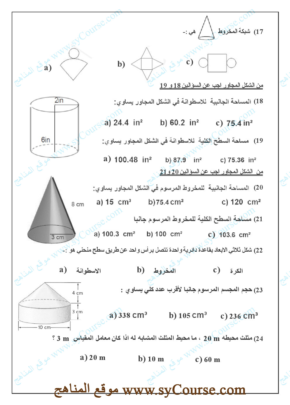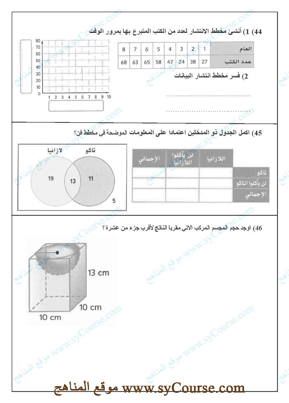 الصف الثامن, الفصل الثالث, رياضيات, أسئلة شاملة للفصل الثالث