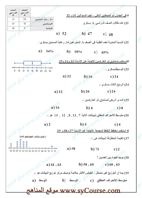 9. حل مراجعة امتحانية وفق الهيكل الوزاري منهج ريفيل المسار المتقدم