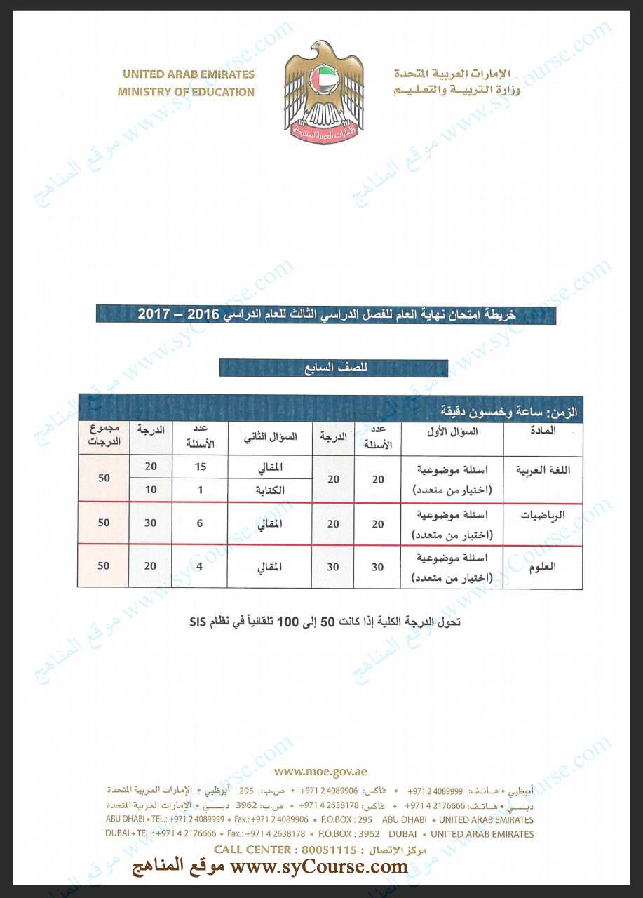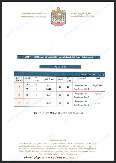 معلومات الملف: الصف السابع: محتوى خريطة امتحان نهاية العام 2016-2017 التي عممتها الوزارة | ||