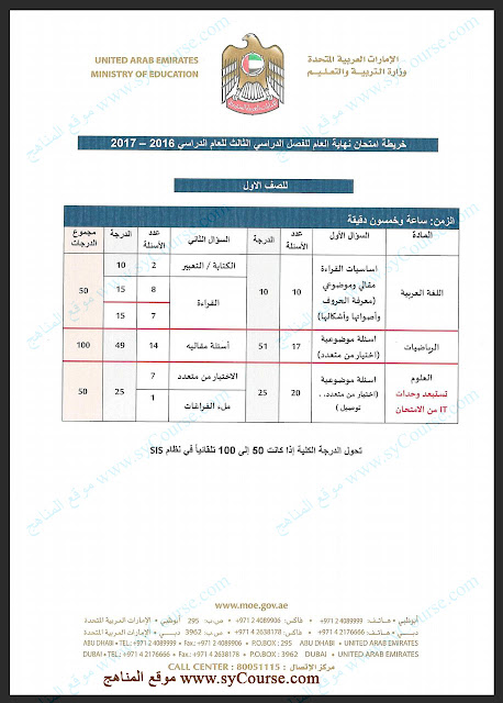 معلومات الملف: الصف الأول: محتوى خريطة امتحان نهاية العام 2016-2017 التي عممتها الوزارة | ||