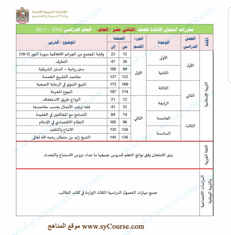 معلومات الملف: وزارة التربية والتعليم تعلن مقررات امتحان الاعادة لطلبة الثاني عشر للمسارين (العام والمتقدم) للعام الدراسي 2016-2017 | ||