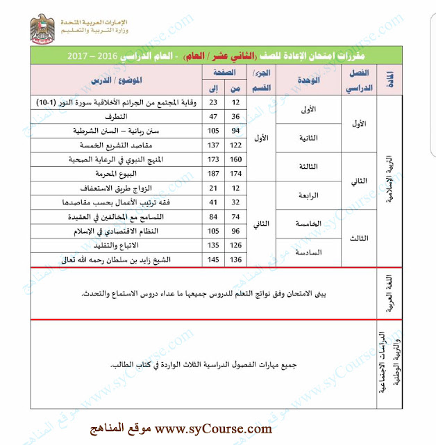 وزارة التربية والتعليم تعلن مقررات امتحان الاعادة لطلبة الثاني عشر للمسارين (العام والمتقدم) للعام الدراسي 2016-2017 |