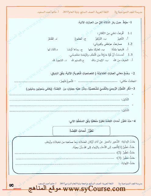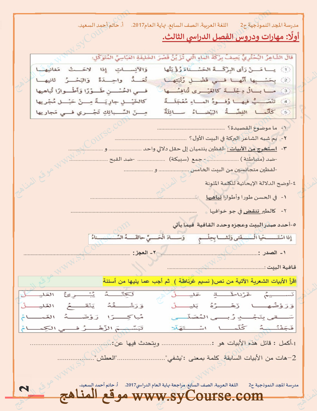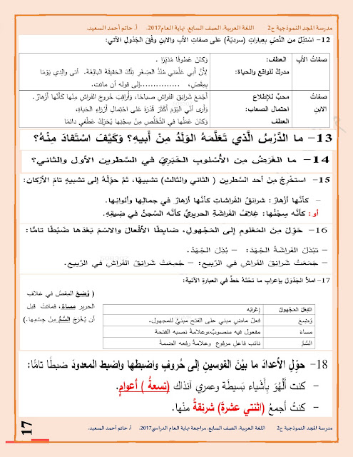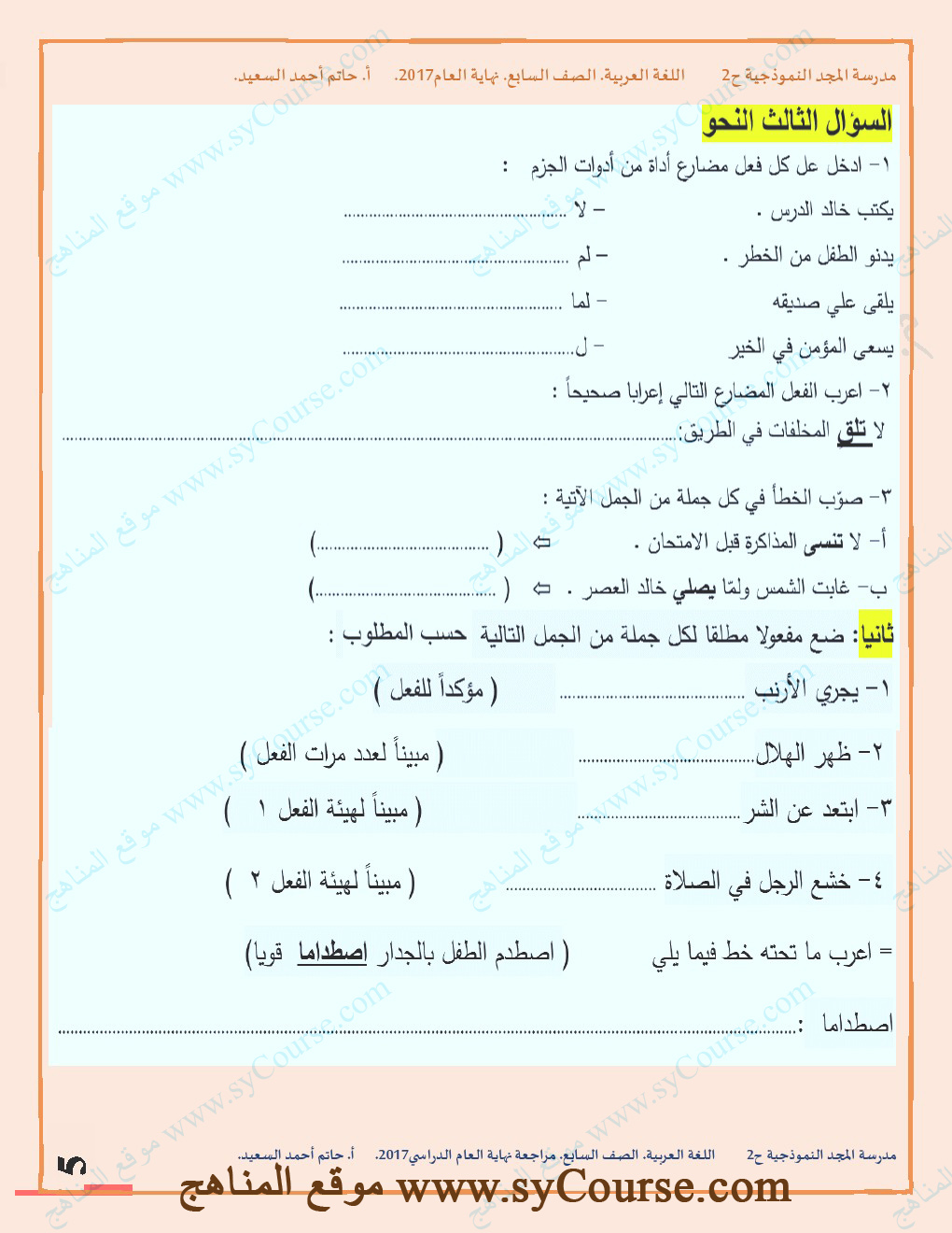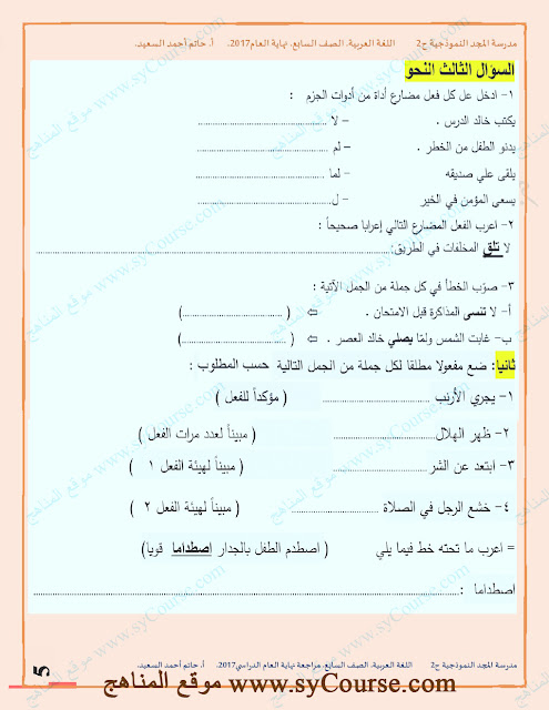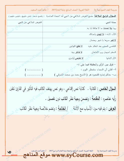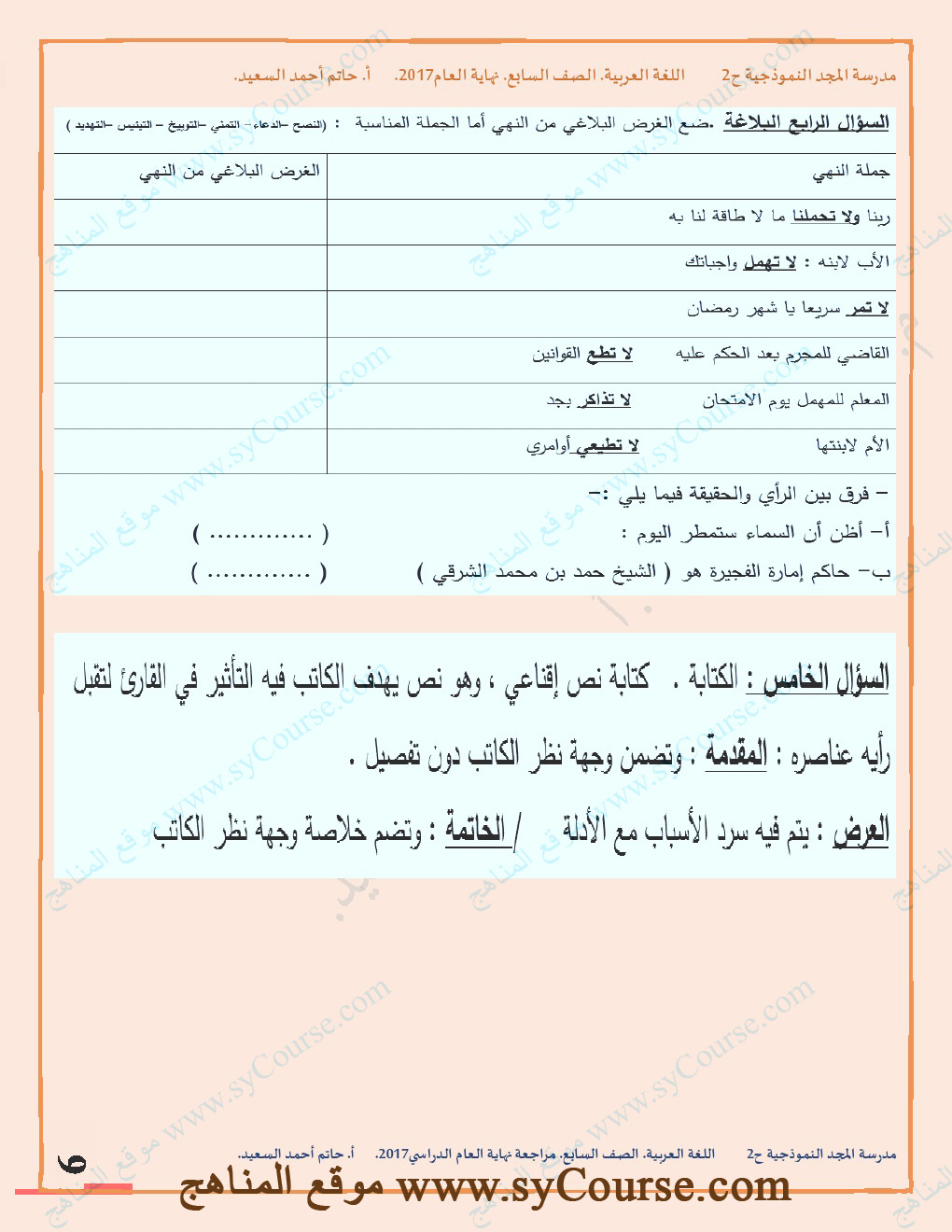 الصف السابع, لغة عربية, مراجعة شاملة لامتحان نهاية العام الدراسي 2016-2017 للتحميل اتبع الرابط التالي: http://sycourse.com/up/do.php?id=426