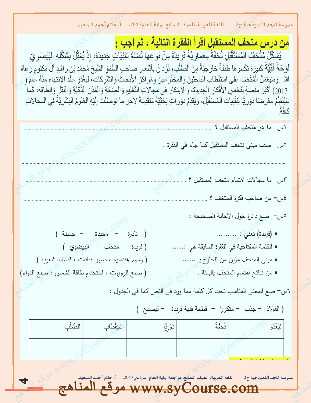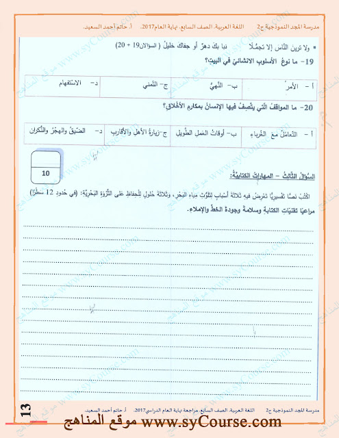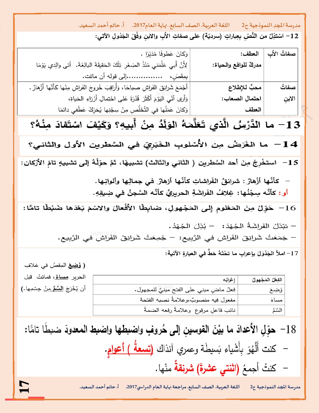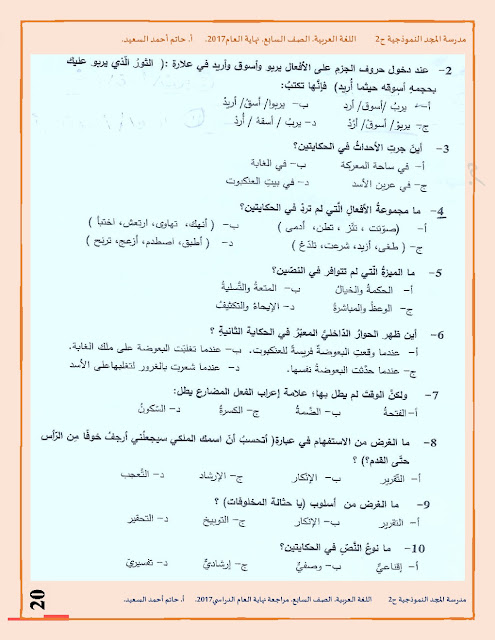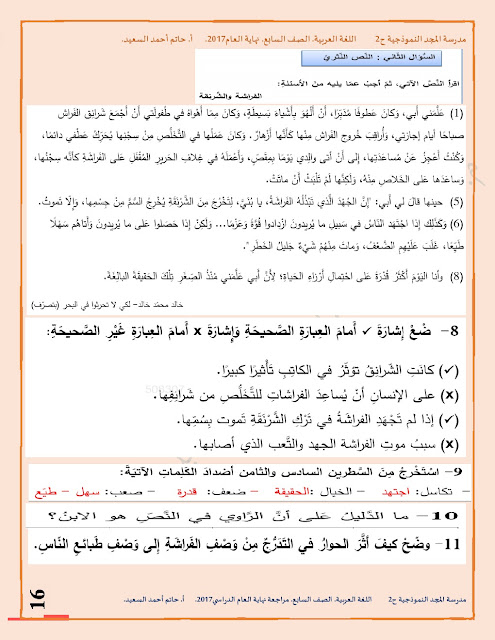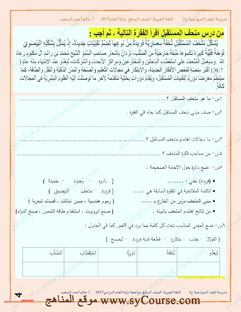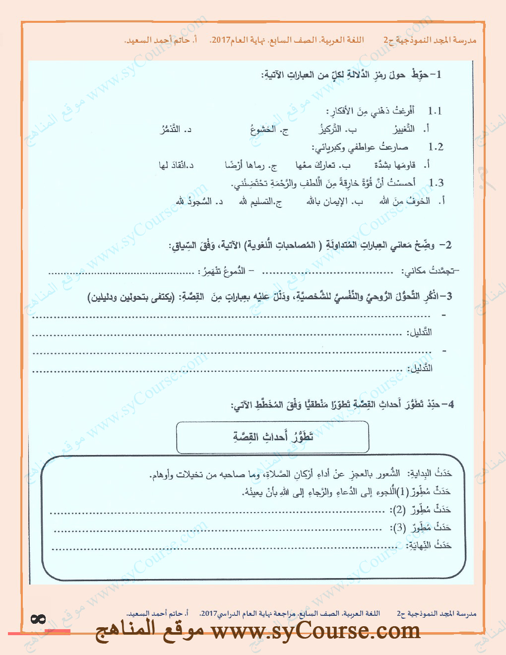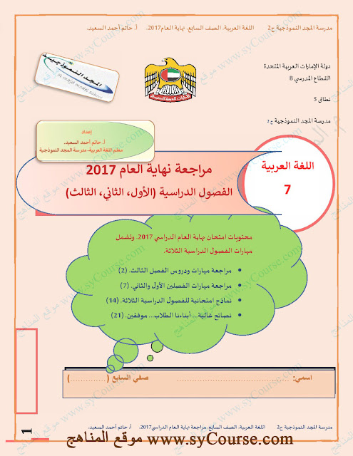 الصف السابع, لغة عربية, مراجعة شاملة لامتحان نهاية العام الدراسي 2016-2017 للتحميل اتبع الرابط التالي: http://sycourse.com/up/do.php?id=426