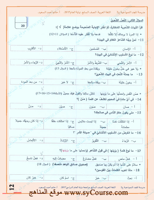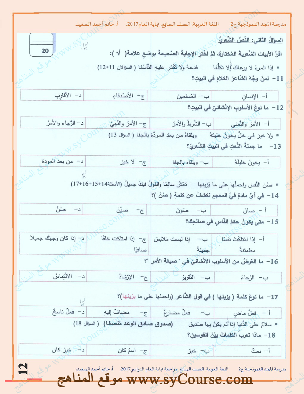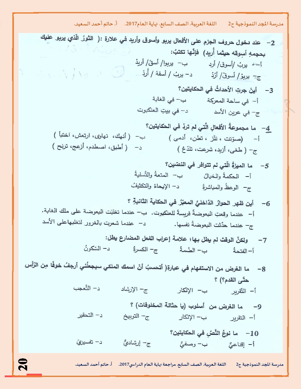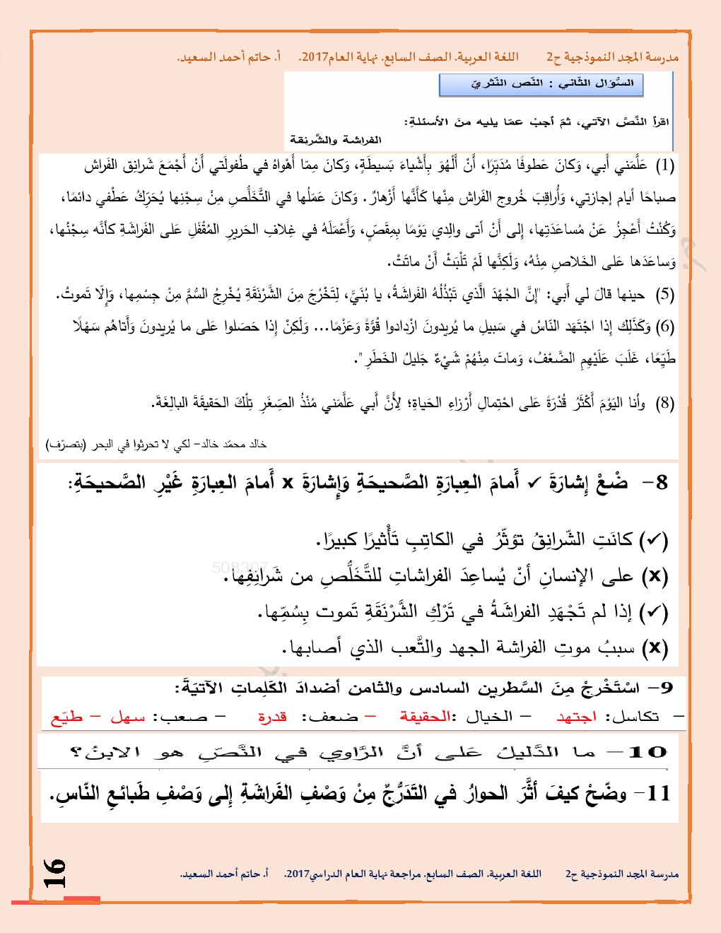 الصف السابع, لغة عربية, مراجعة شاملة لامتحان نهاية العام الدراسي 2016-2017 للتحميل اتبع الرابط التالي: http://sycourse.com/up/do.php?id=426