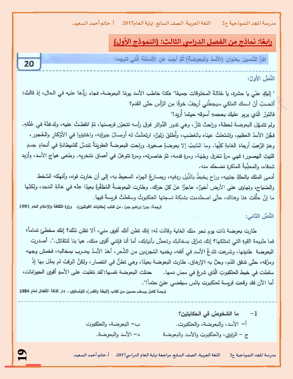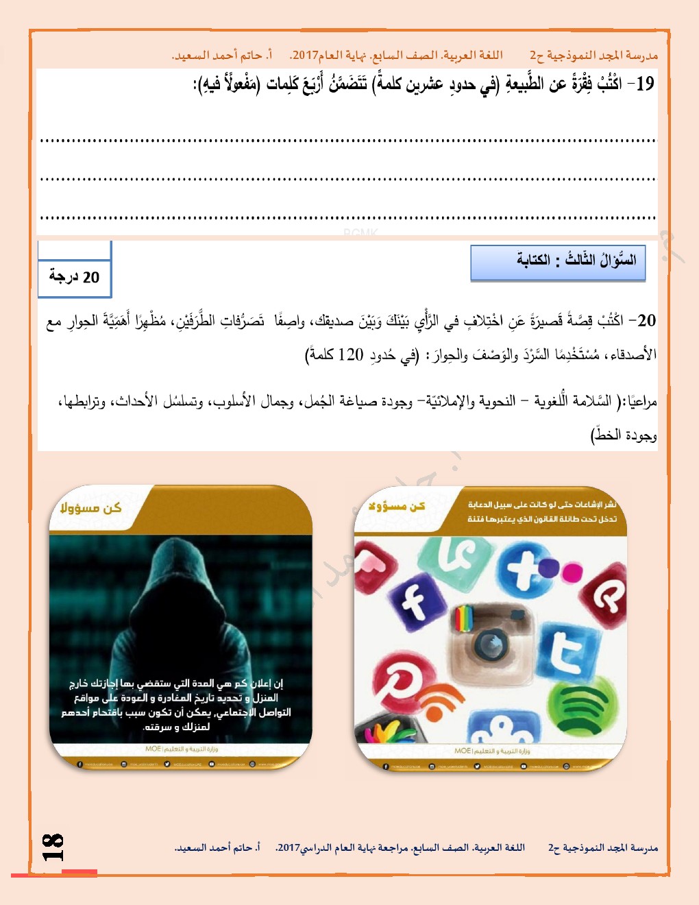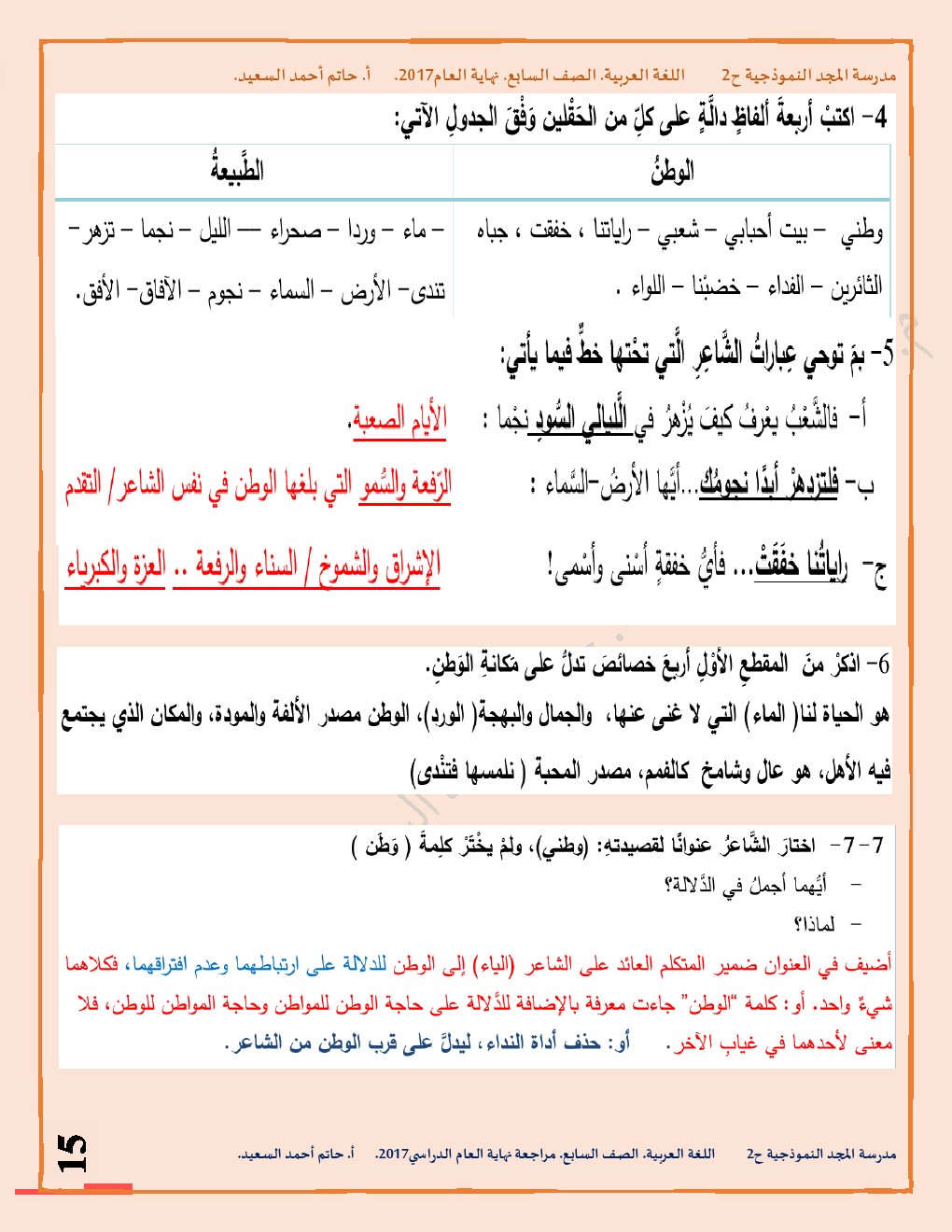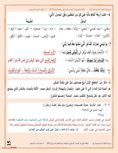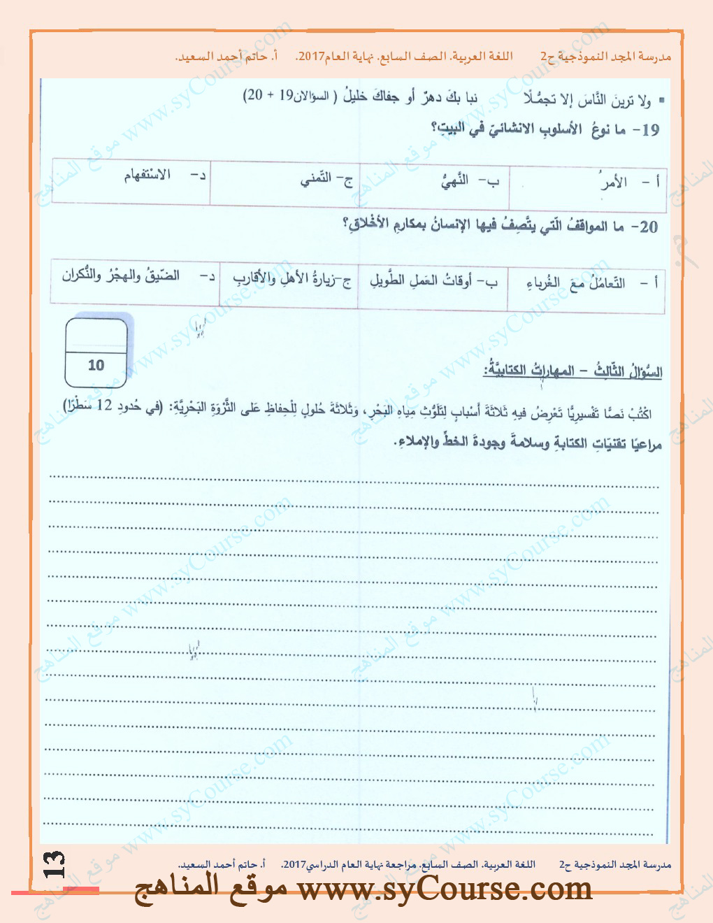 الصف السابع, لغة عربية, مراجعة شاملة لامتحان نهاية العام الدراسي 2016-2017 للتحميل اتبع الرابط التالي: http://sycourse.com/up/do.php?id=426