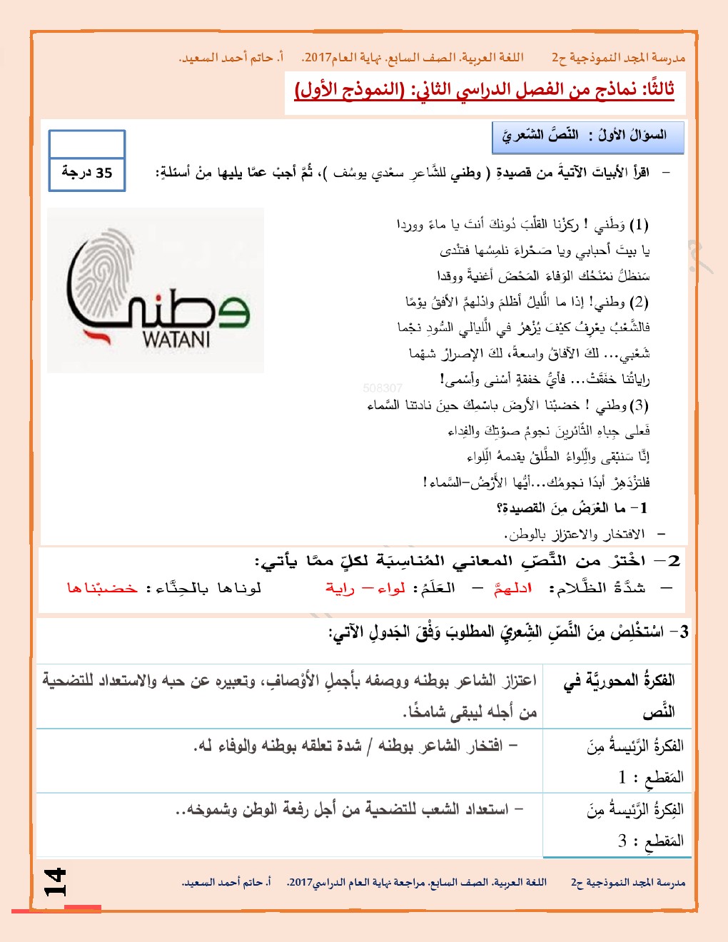 | معلومات الملف: الصف السابع, لغة عربية, مراجعة شاملة لامتحان نهاية العام الدراسي 2016-2017 | ||