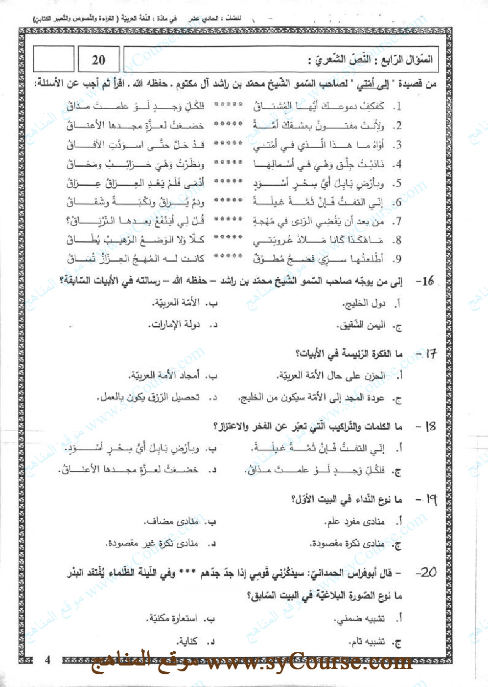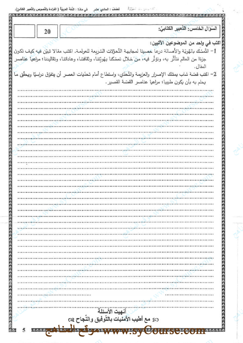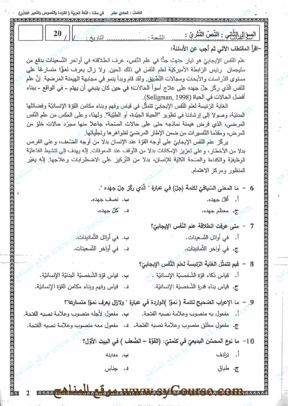 الصف الحادي عشر العام والمتقدم, لغة عربية, امتحان تجريبي لنهاية العام 2016-2017 للتحميل اتبع الرابط التالي: http://sycourse.com/up/do.php?id=428