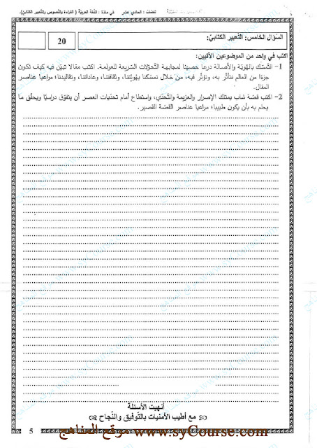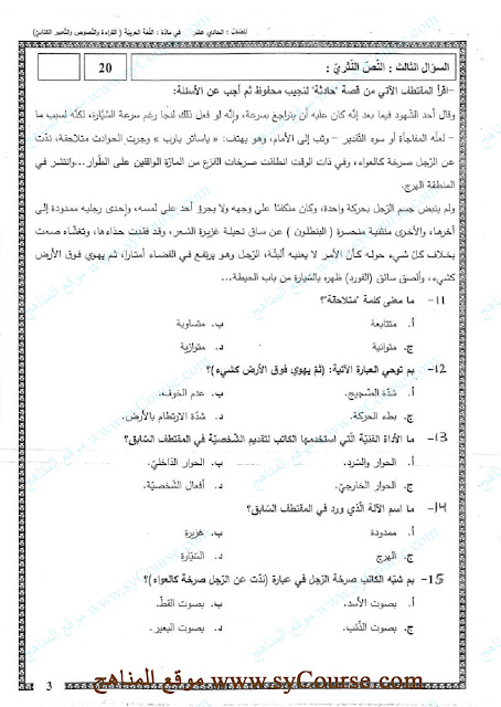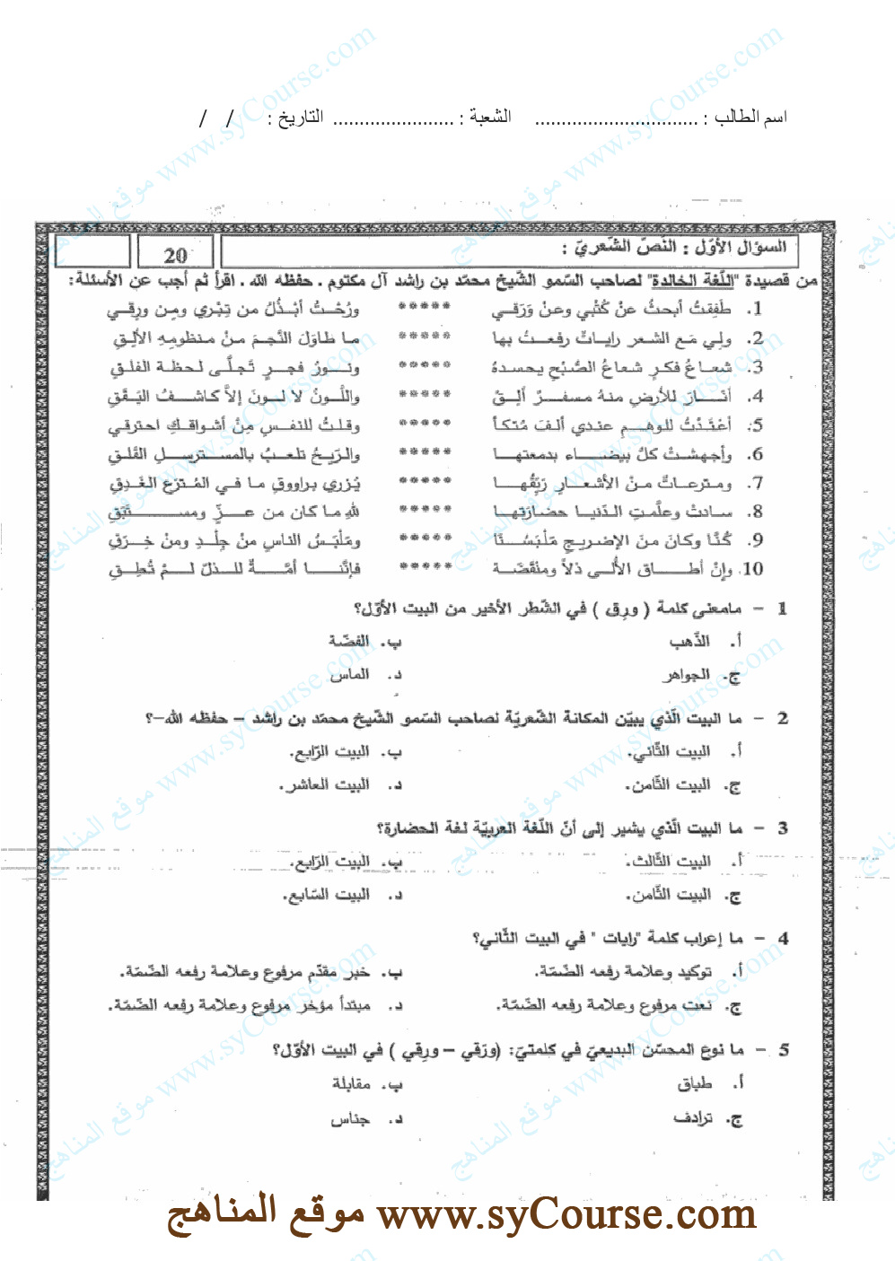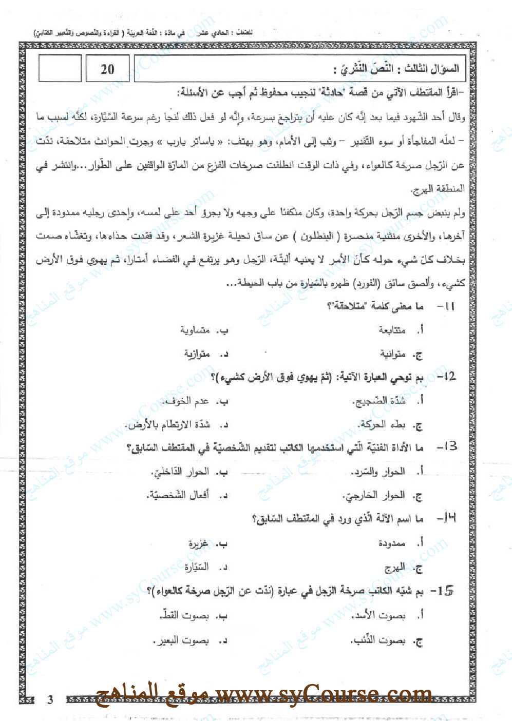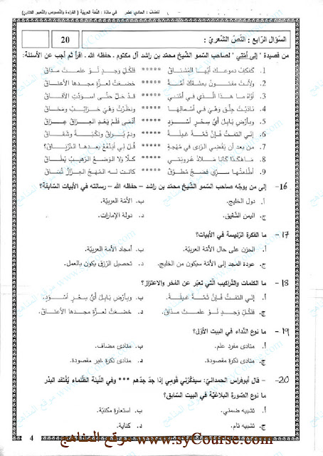 الصف الحادي عشر العام والمتقدم, لغة عربية, امتحان تجريبي لنهاية العام 2016-2017 للتحميل اتبع الرابط التالي: http://sycourse.com/up/do.php?id=428