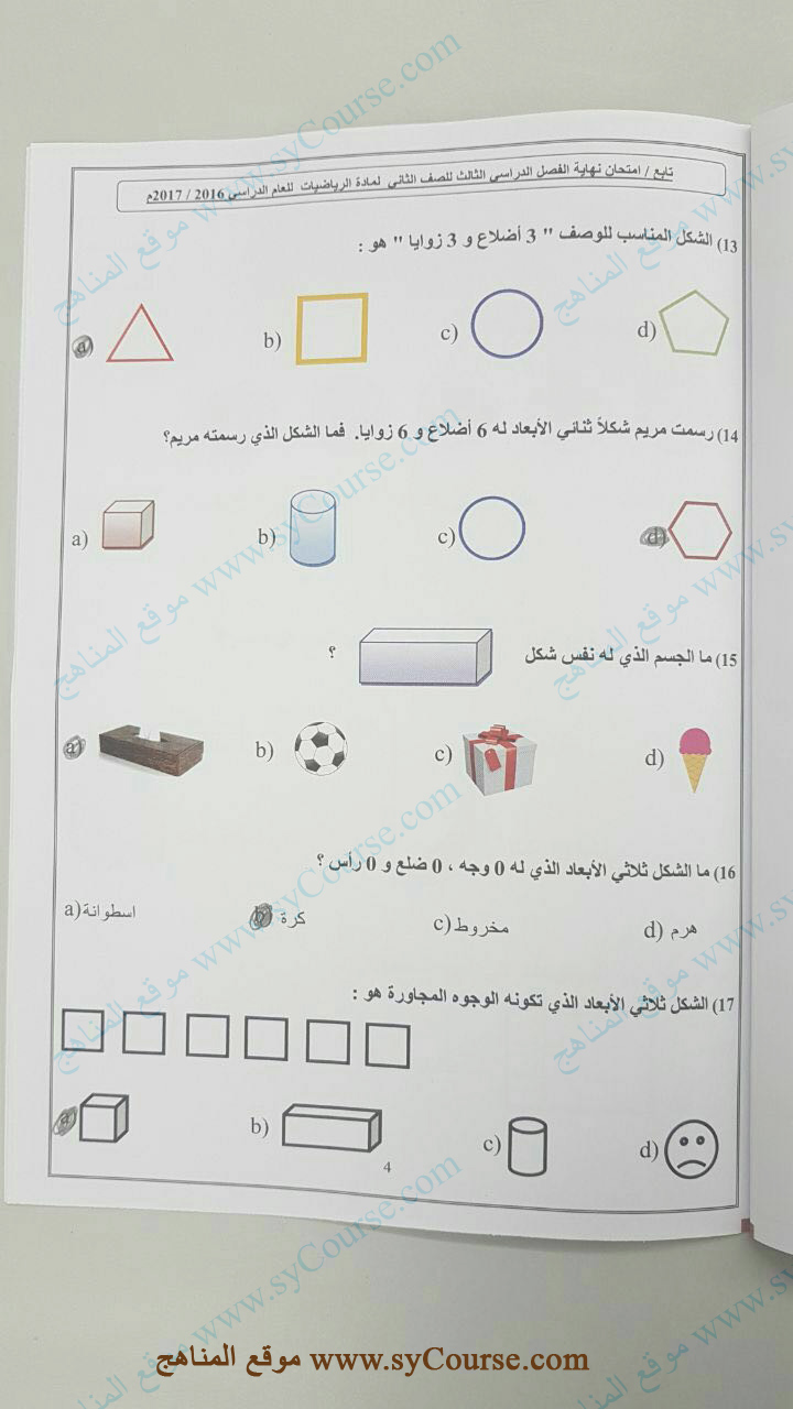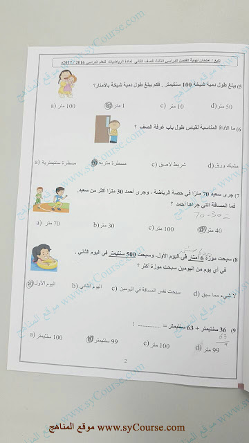 معلومات الملف: الصف الثاني, رياضيات, الاسئلة الوزارية لامتحان نهاية العام الدراسي 2016-2017.pdf | ||