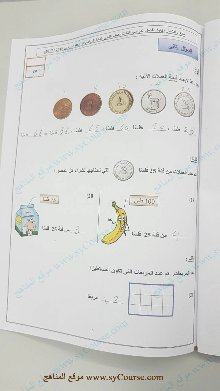 الصف الثاني-الاسئلة الوزارية لامتحان نهاية العام الدراسي 2016-2017.pdf للتحميل اتبع الرابط التالي: http://sycourse.com/up/do.php?id=429