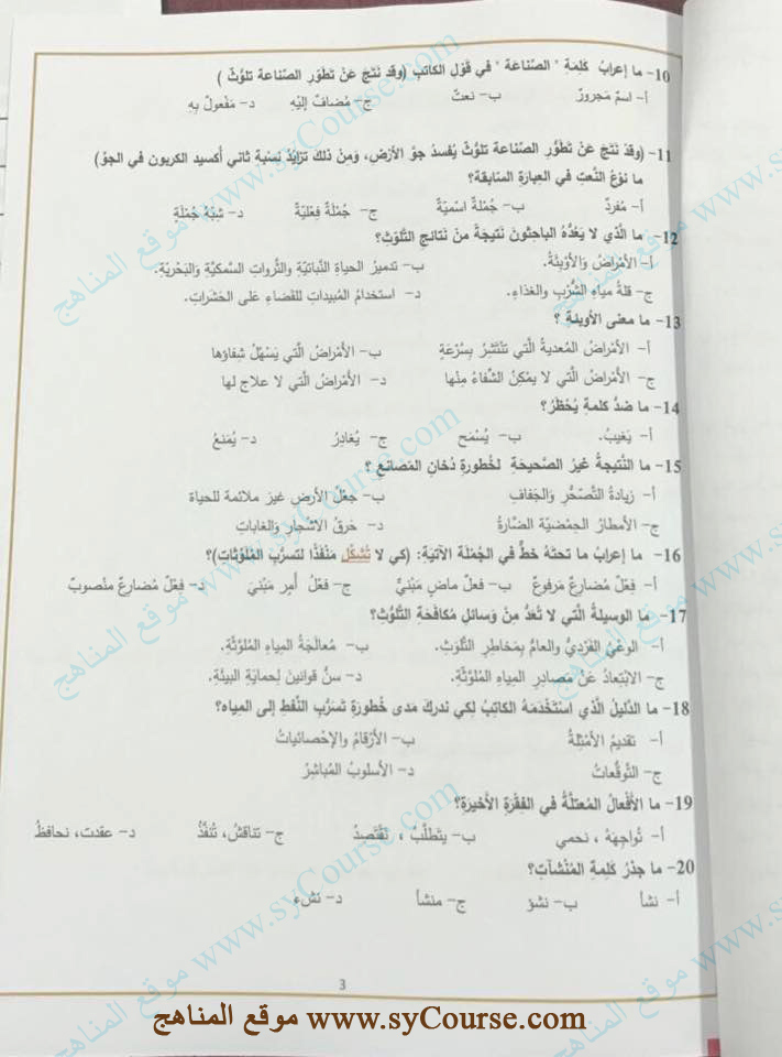 الصف السابع, لغة عربية, أسئلة امتحان نهاية العام الدراسي 2016-2017 للتحميل اتبع الرابط التالي: http://sycourse.com/up/do.php?id=436