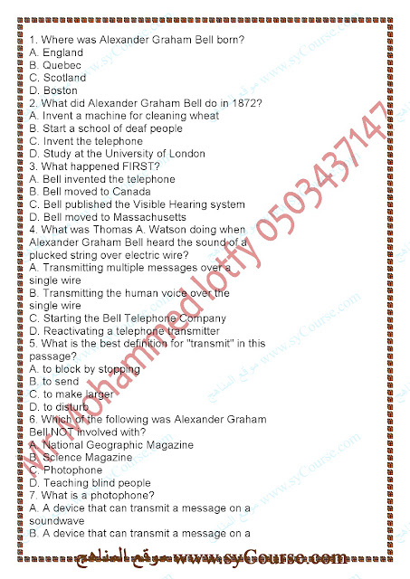 جميع الاختبارات التشخيصية المتوفرة في جميع المواد ولجميع الصفوف | |