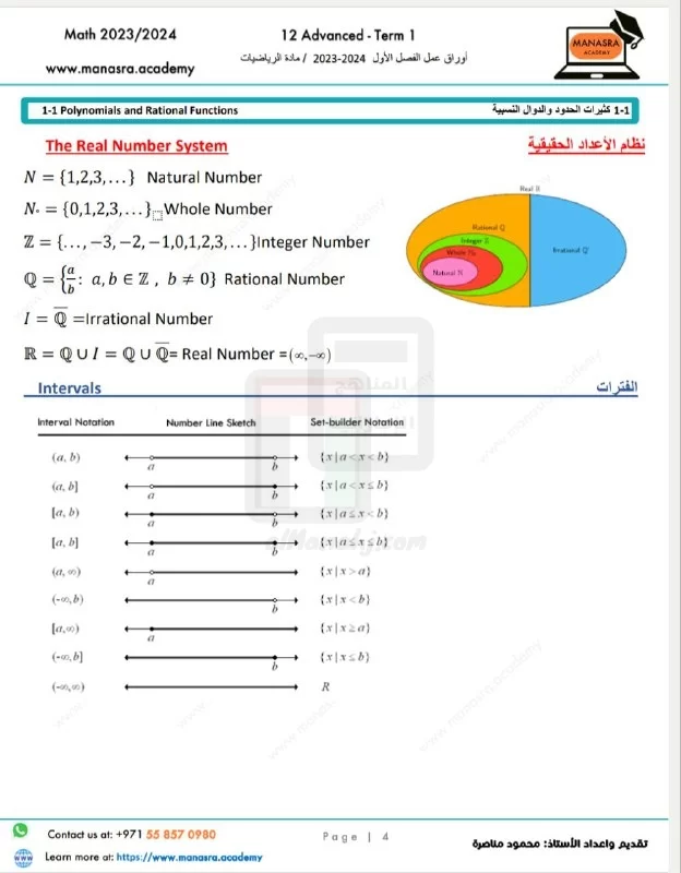 أنت هنا: موقع المناهجالمناهج الإماراتية الصف الثاني عشر المتقدم رياضيات الفصل الأول أوراق عمل