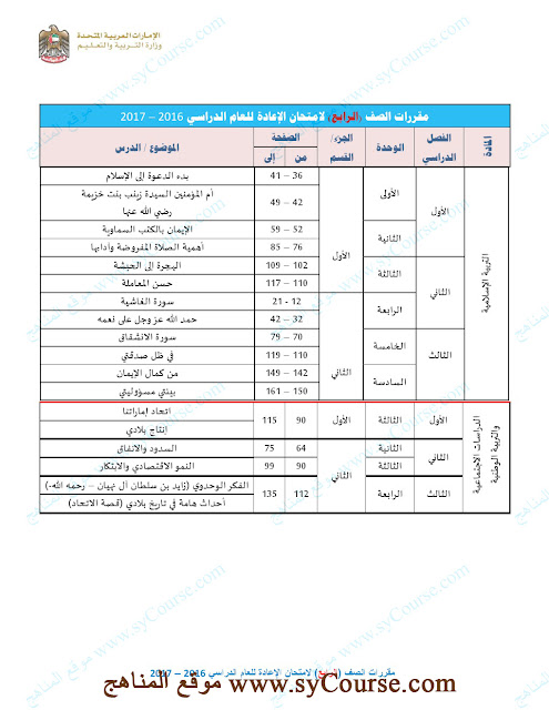 معلومات الملف: مقررات امتحانات الإعادة للصفوف من الثالث وحتى الحادي عشر 2016-2017 | ||