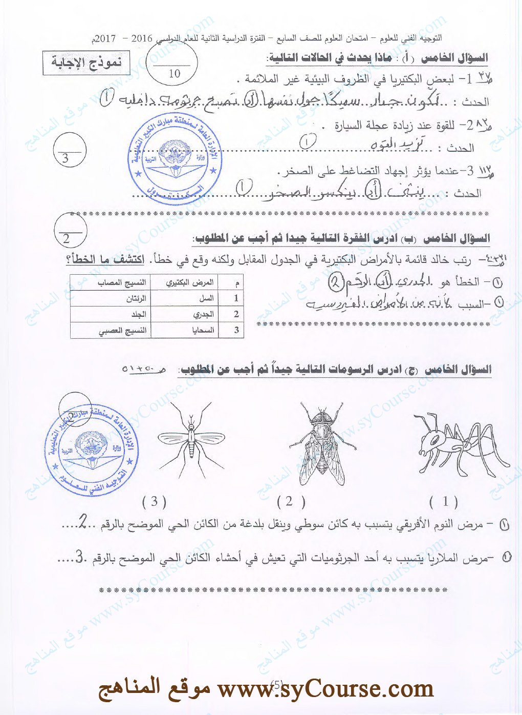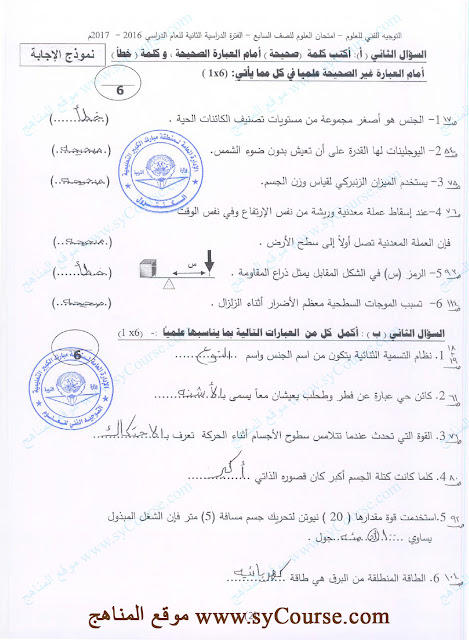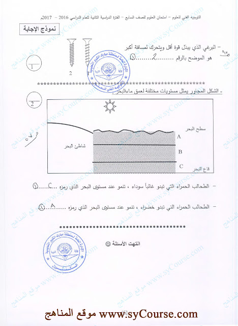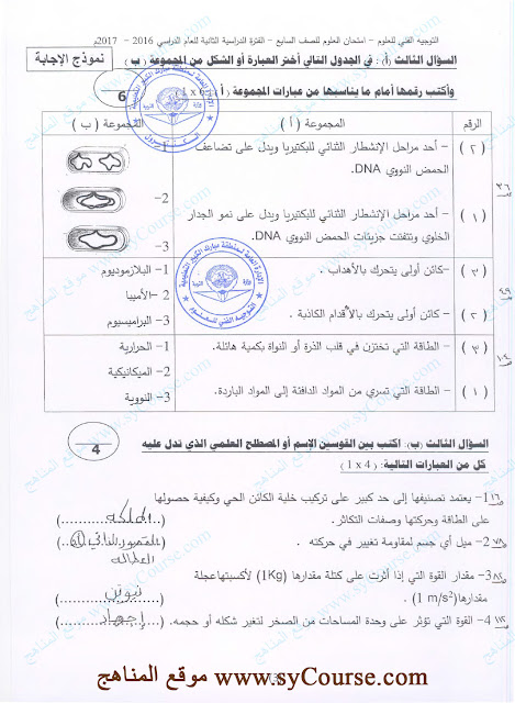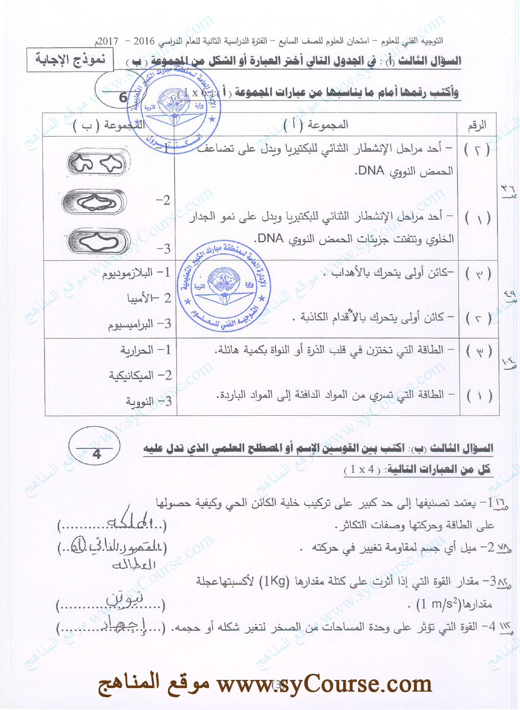 معلومات الملف: الصف السابع, الفصل الثاني, علوم, اختبار نهاية الفصل الثاني من العام الدراسي 2016-2017 مع الإجابة | ||