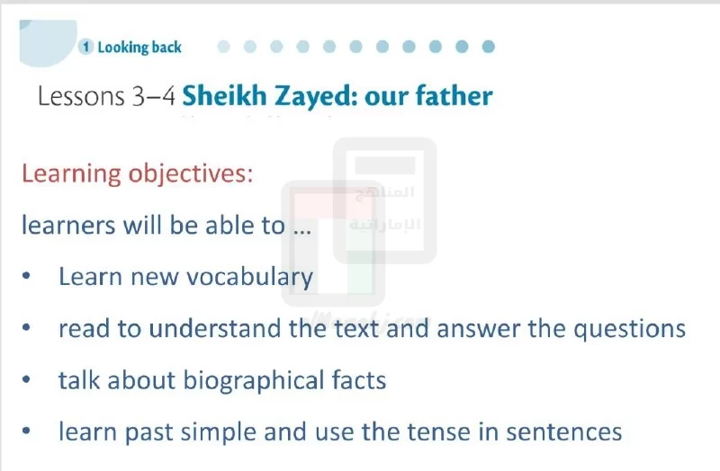 عرض بوربوينت حل الدرس الثالث والرابع Sheikh Zayed Our father الشيخ زايد والدنا من الوحدة الأولى