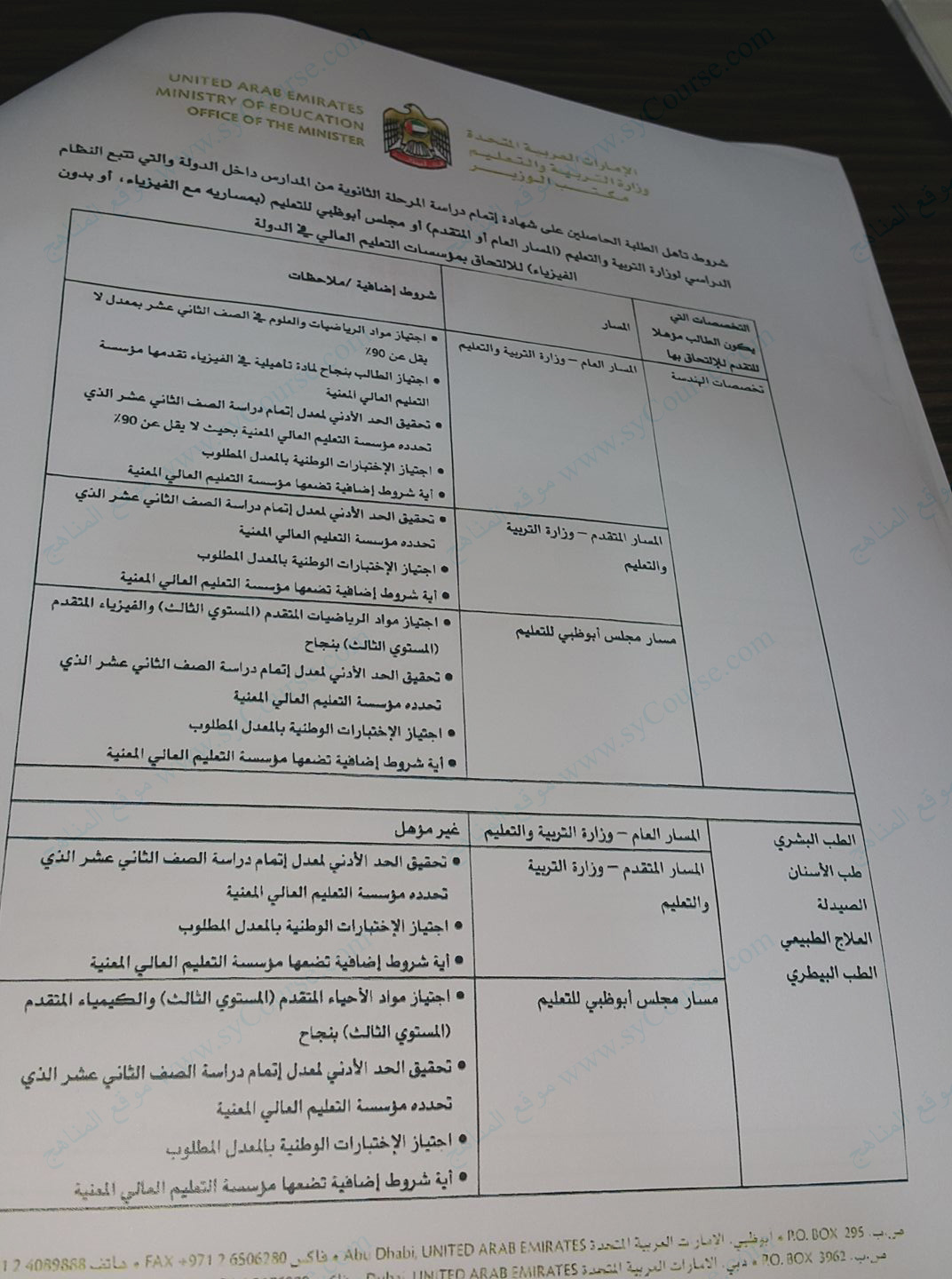 تعديل هام في شروط خريجي الثانوية العامة للالتحاق بمؤسسات التعليم العالي في دولة الإمارات | ||