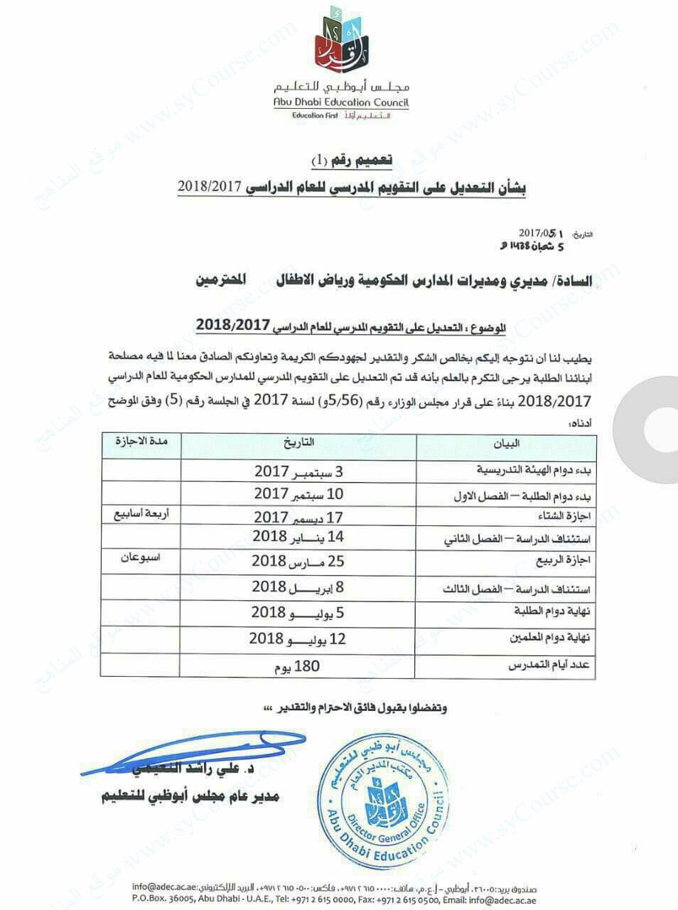 أحدث تعديل على التقويم المدرسي في الإمارات | ||