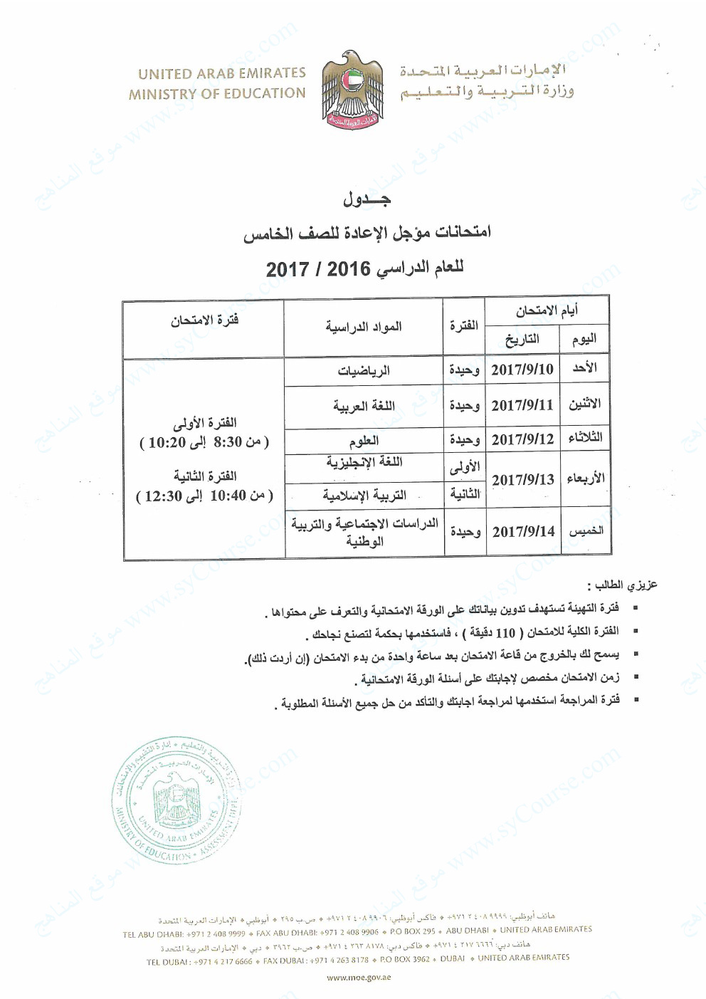 أنت هنا: موقع المناهج ⇦ المناهج الإماراتية ⇦ أخبار ⇦ الامتحانات ⇦ الفصل الثالث ⇦ الامتحان النهائي |