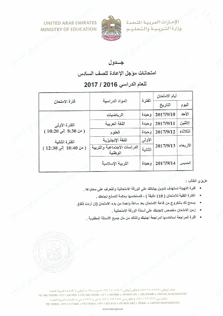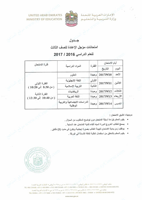 جدول امتحانات مؤجل الإعادة للصفوف من الثالث وحتى الثاني 201622017, أخبار, الامتحانات, الفصل الثالث, 2016-2017 | ||