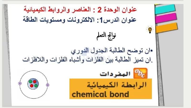 تم إيجاد الملف: ملخص وشرح الدرس الأول الالكترونات ومستويات الطاقة من الوحدة الثانية الجزء الأول