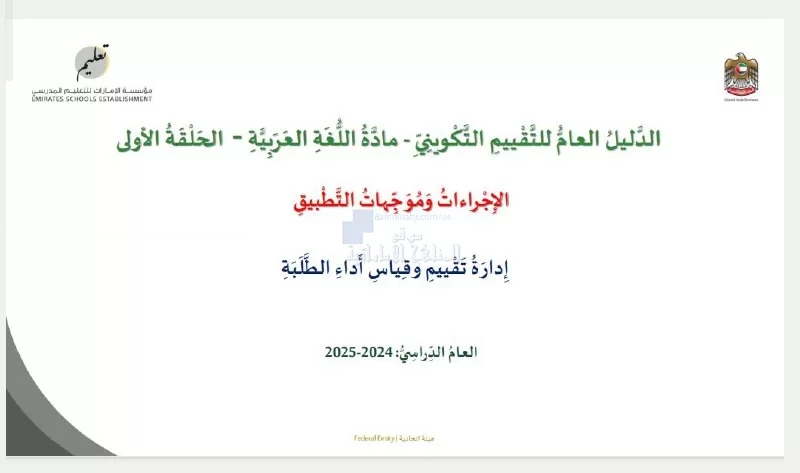 معلومات الملف: نرفق لكم ملف يتضمن الدليل العام لـ التقييم التكويني لمادة اللغة العربية للصفوف من الأول إلى الرابع الفصل الدراسي الأول للعام الدراسي 2024-2025 | ||