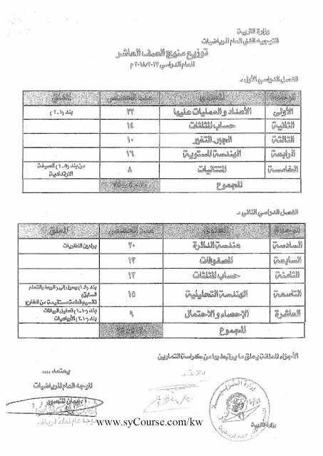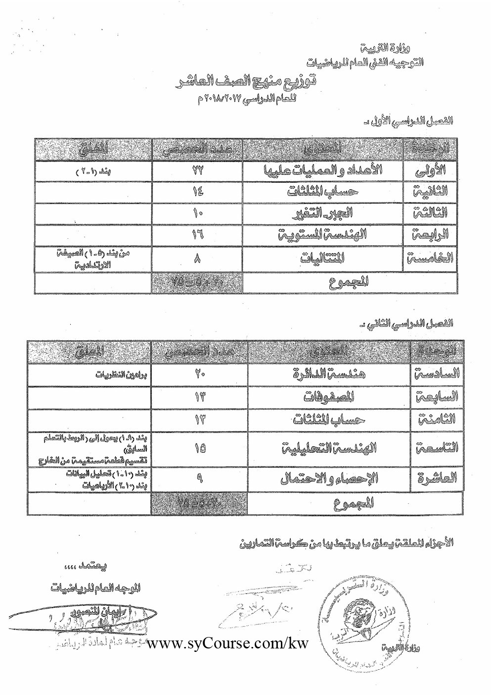 إليكم توزيع مادة الرياضيات وفق المنهاج الكويتي للفترتين الدراسيتين الأولى والثانية من العام الدراسي 2017-2018 | ||