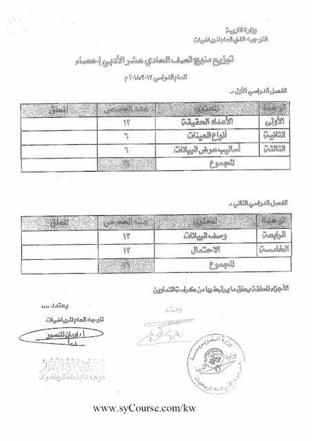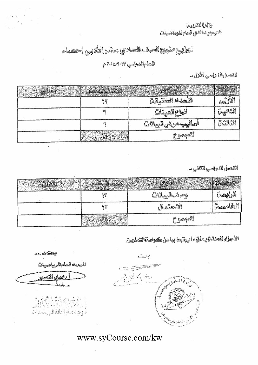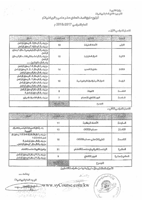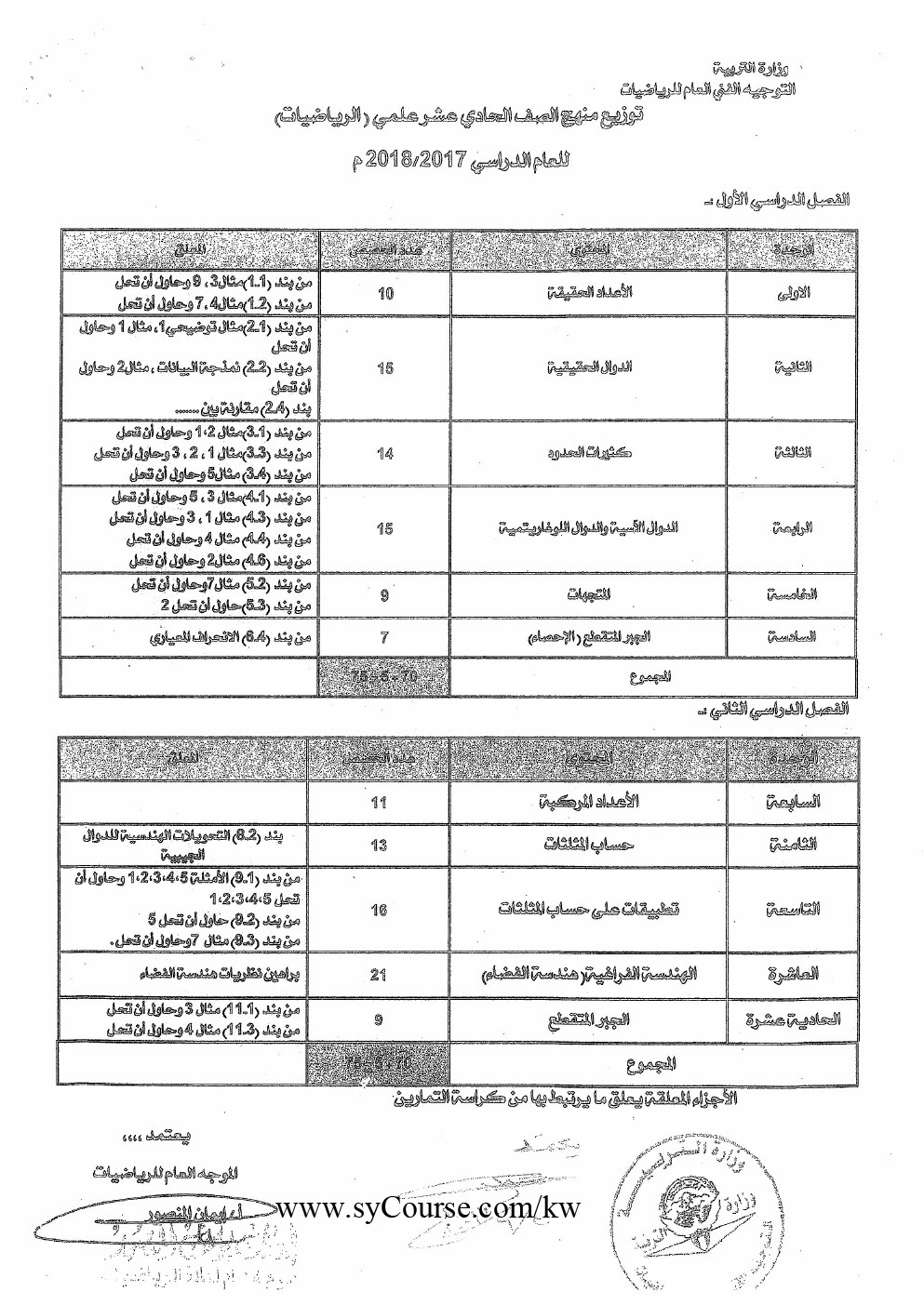علمي وأدبي توزيع مقرر الرياضيات | ||